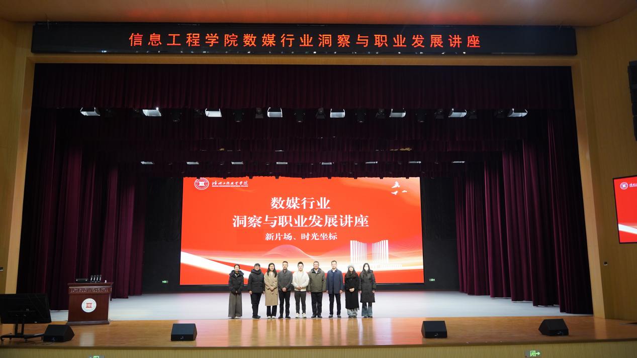 为深化校企合作、洞悉行业前沿、助力学生职业发展,12月18日上午,我校在新青年剧场举办“数媒行业洞察与职业发展”专家讲座暨校企交流会。活动特邀新片场、时光坐标等行业领军企业专家来校分享。信息工程学院、艺术设计学院近800名师生现场聆听,并与企业代表展开深入交流。活动由信息工程学院院长吕鹏飞主持。