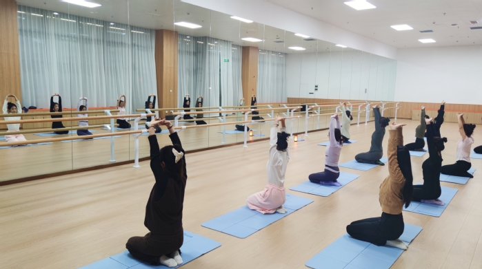 为丰富教职工课余文化生活,关注身心健康、缓解工作压力,在校工会的积极提议与统筹协调下,我校首节“教职工瑜伽课堂”于12月17日晚在新青年剧场二楼排练厅顺利开展,吸引了十余名女教职工热情参与。本次课程由校工会精心安排,特邀学工处孙英敏老师担任授课老师。