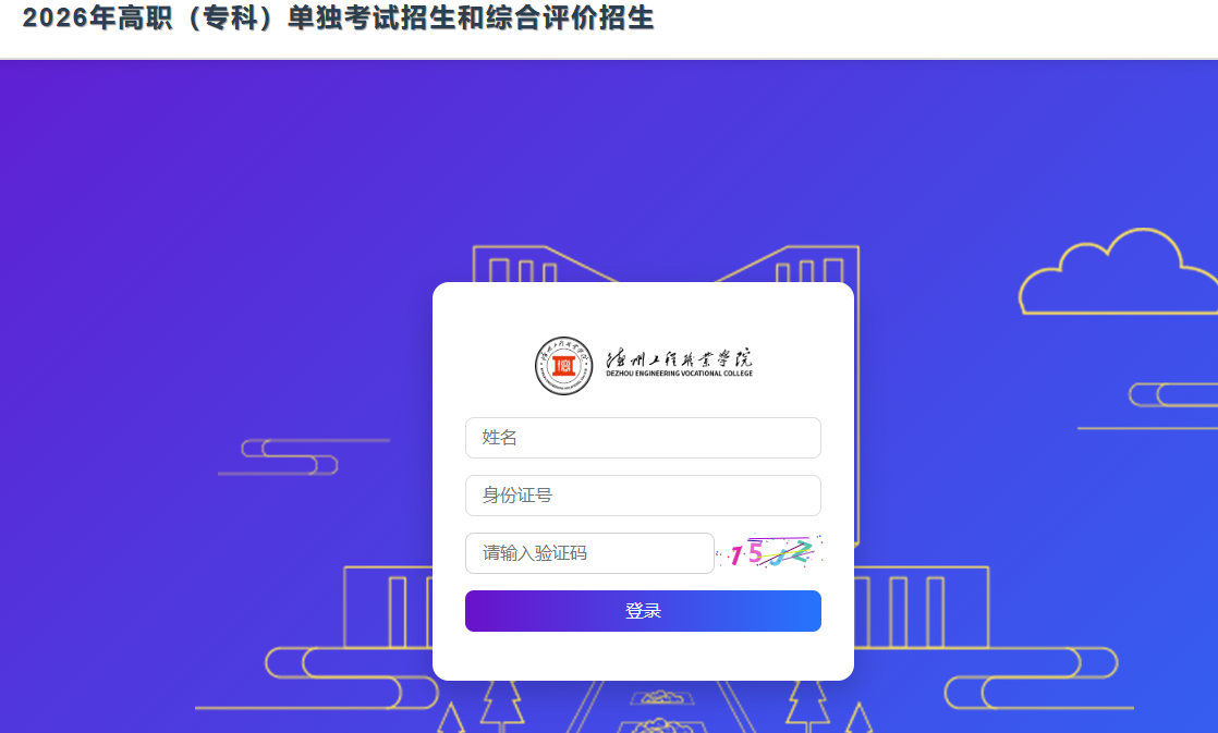 1.考生登录我校官网(https://www.dzgcxy.com/),点击首页上的飘窗进入我校2026年高职(专科)单独考试招生和综合评价招生缴费及准考证打印系统,如下图。