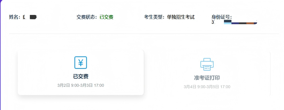 3.请再次核实考生姓名、考生类型、身份证号,确认无误后进行缴费