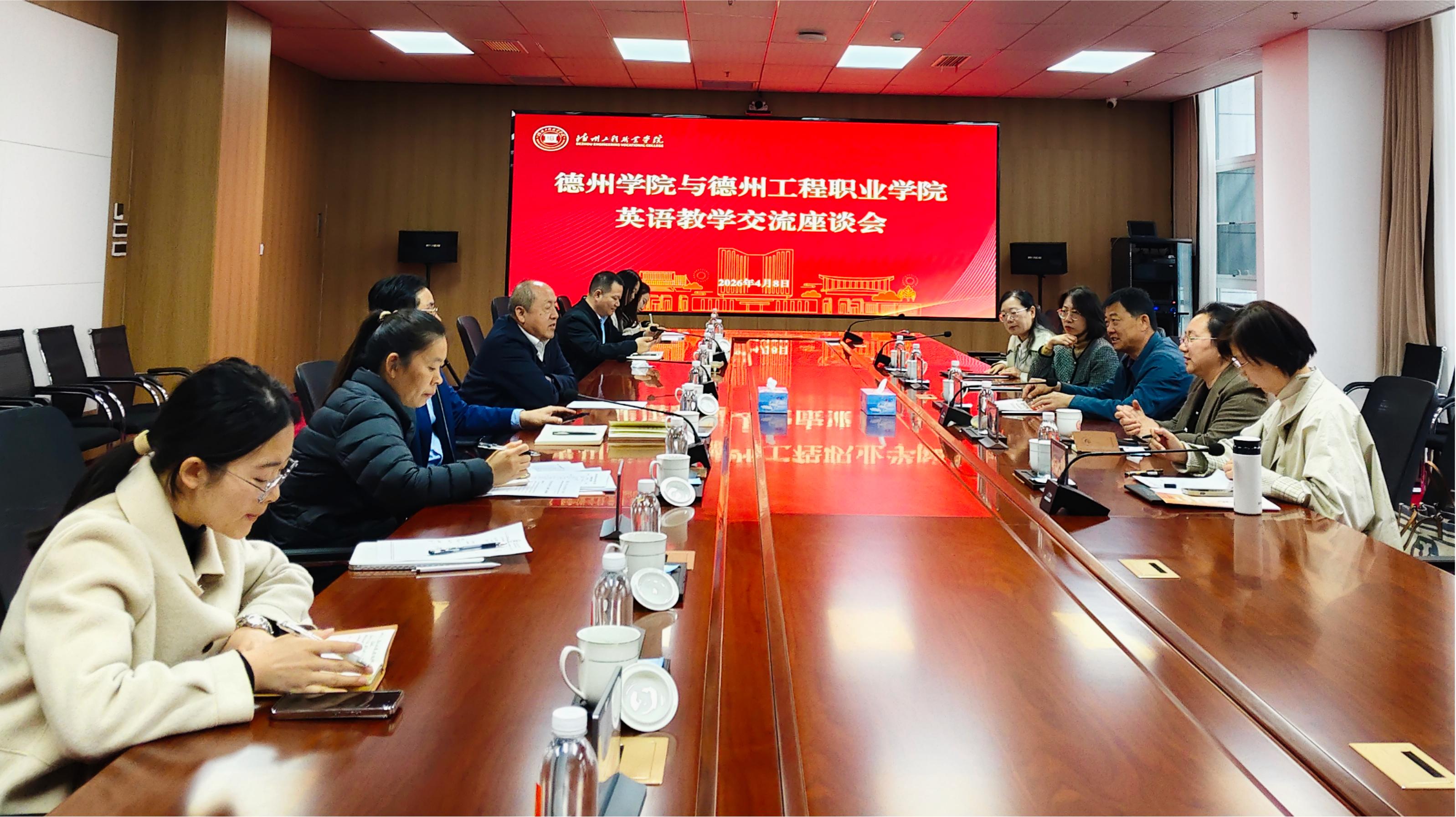 为深入推动高等教育与职业教育协同发展,实现资源共享、优势互补,近日,德州工程职业学院教务处、基础教学部与德州学院外国语学院联合开展了合作共建活动。德州学院外国语学院党委书记孙红旗携部分英语教师到访,德州工程职业学院党委书记王金利、副校长王守庆、党建联络员赵金凯,以及教务处、基础教学部负责人和英语教研室全体教师参加共建活动。