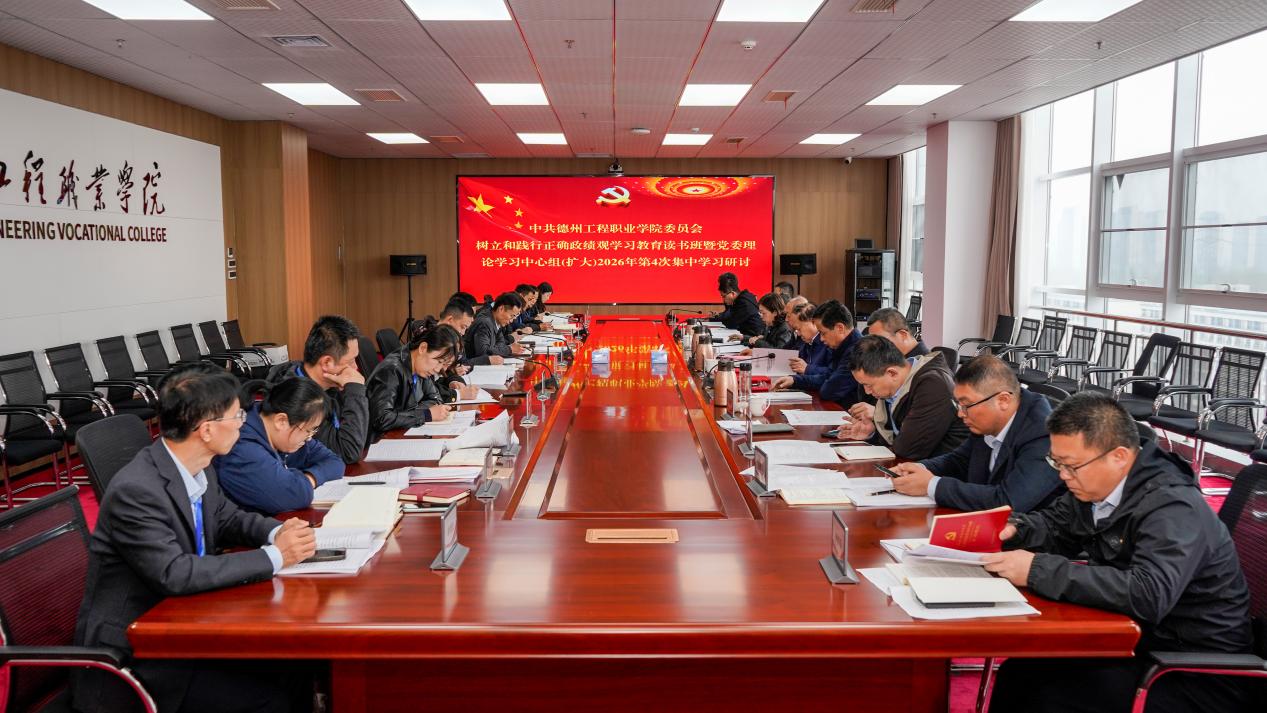 近日,德州工程职业学院开展树立和践行正确政绩观学习教育读书班暨党委理论学习中心组(扩大)2026年第四次集中学习研讨。本次学习以深入学习贯彻习近平总书记关于树立和践行正确政绩观的重要论述为核心,严格落实中央、省、市关于学习教育的工作要求,通过专题领学、集中研讨、个人自学、分组交流的方式开展学习,进一步引导全校党员干部筑牢思想根基、强化使命担当,以正确政绩观引领学校各项事业高质量发展。