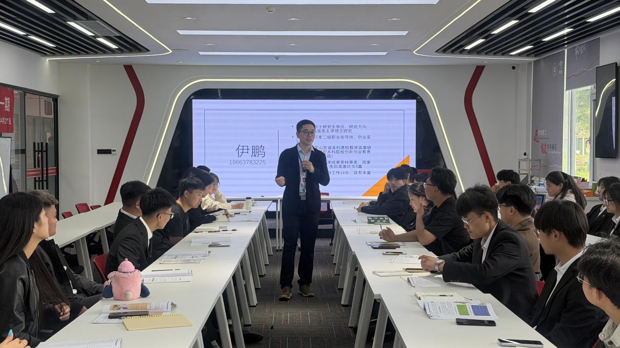 伊鹏以“突破自己”为核心目的,通过互动式教学、团队协作实践等方式,引导开启创业思维探索之旅。同时,他组织学生通过互相了解、剖析优缺点快速融入,并要求在五分钟内完成团队组建、确定团队名称、设计团队LOGO与口号。让大家在短时间内体会到高效协作与创意输出的重要性。