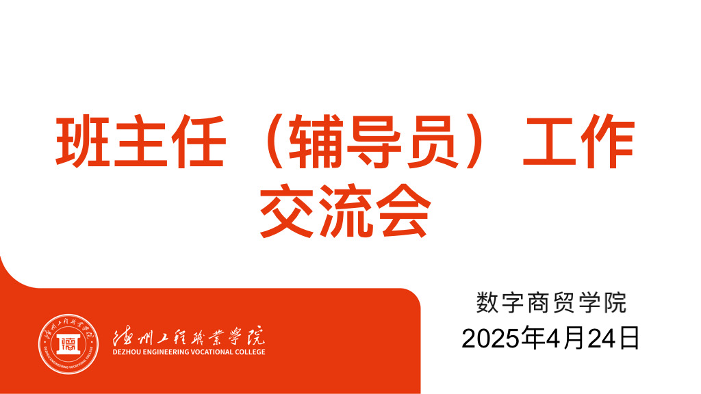 2025年4月24日,数字商贸学院在京东一楼北会议室召开了工作交流会,由数字商贸学院党总支书记、院长杨保福、学管科长杨振辉、王海军、教学科长魏楠楠及全体班主任(辅导员)参加会议。