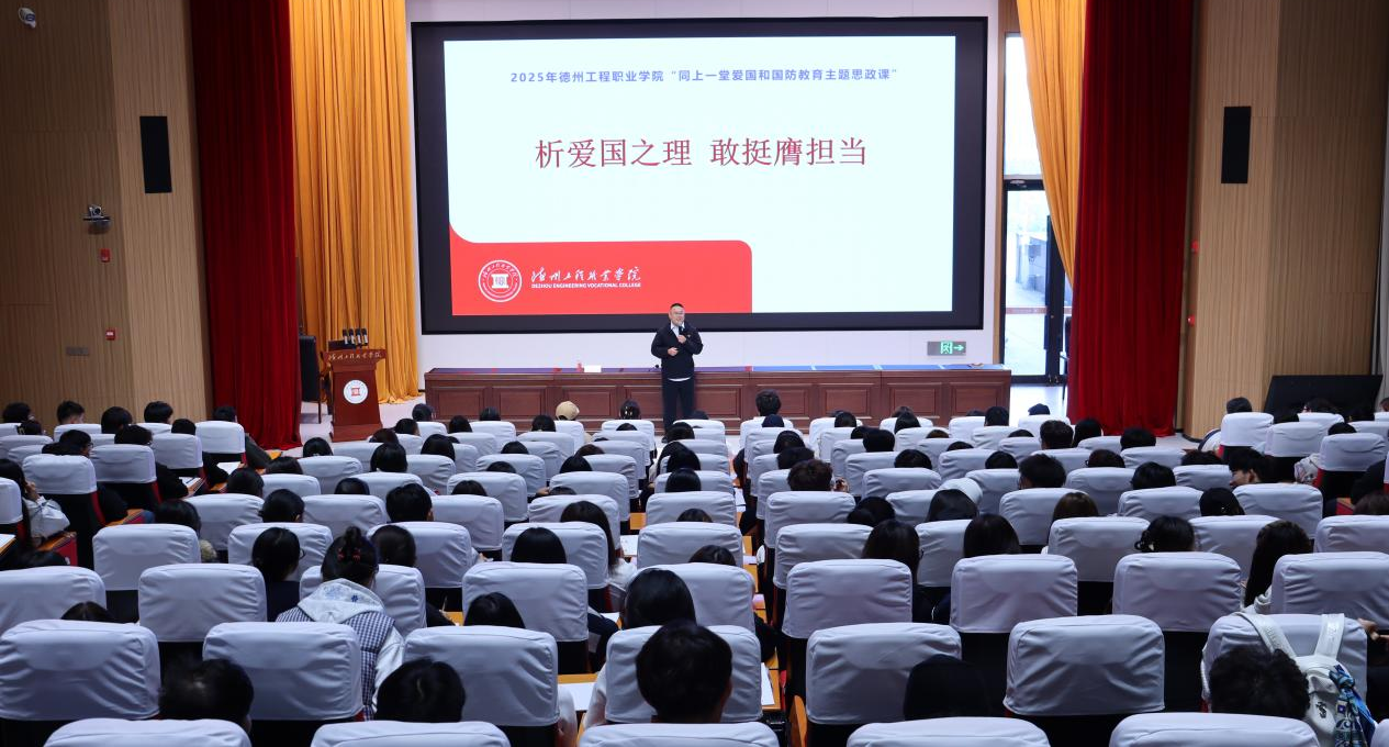 2025年10月13日上午8:00,数字商贸学院53个班级共同开展以“同上一堂爱国和国防教育”为主题的思政课。主会场设在复兴大厦一楼泰山厅,由数字商贸学院党总支书记、院长杨保福主讲。