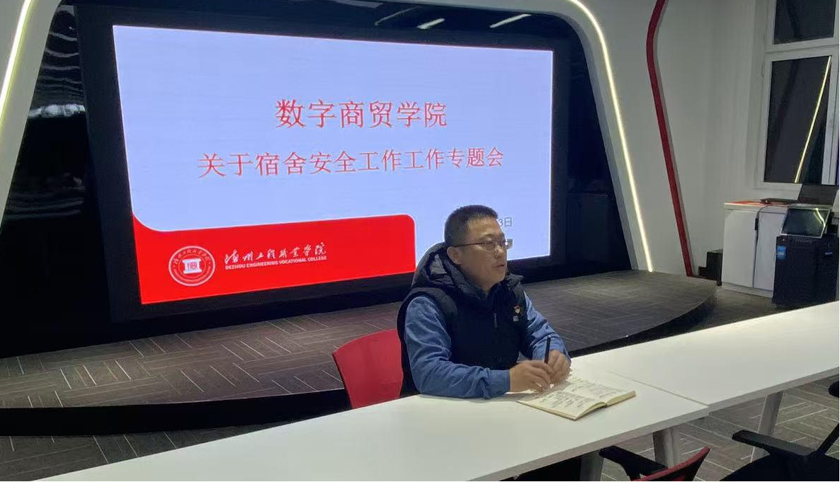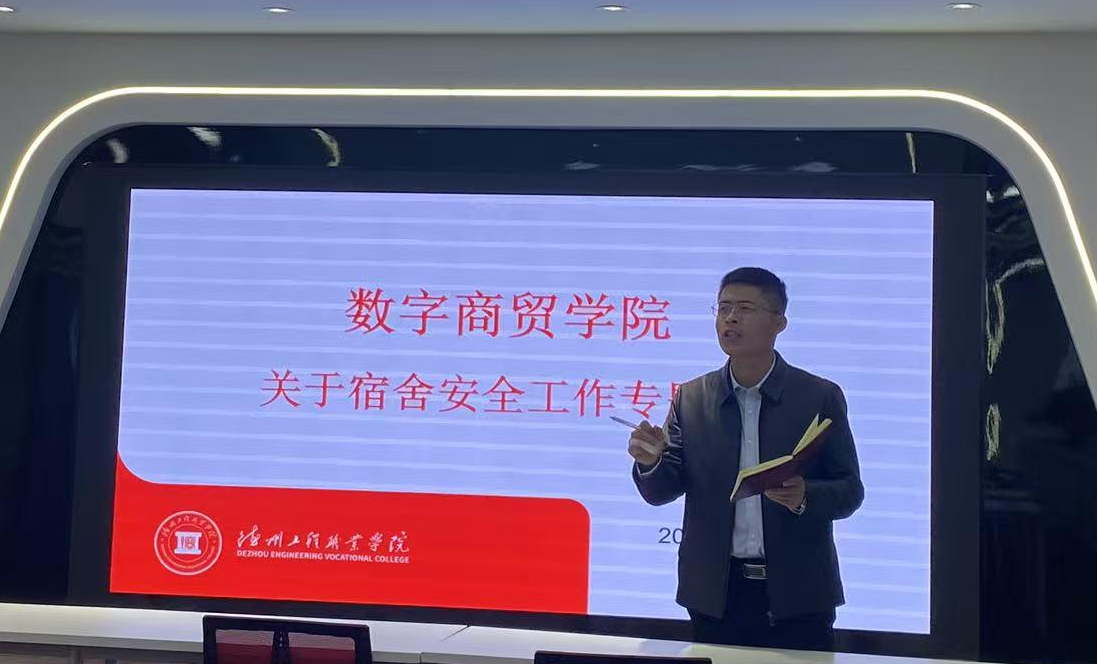 2025年11月3日17:30,数字商贸学院在京东一楼会议室召开关于宿舍安全工作专题会,党总支书记、院长杨保福、副院长杨振辉及全体班主任(辅导员)参会。