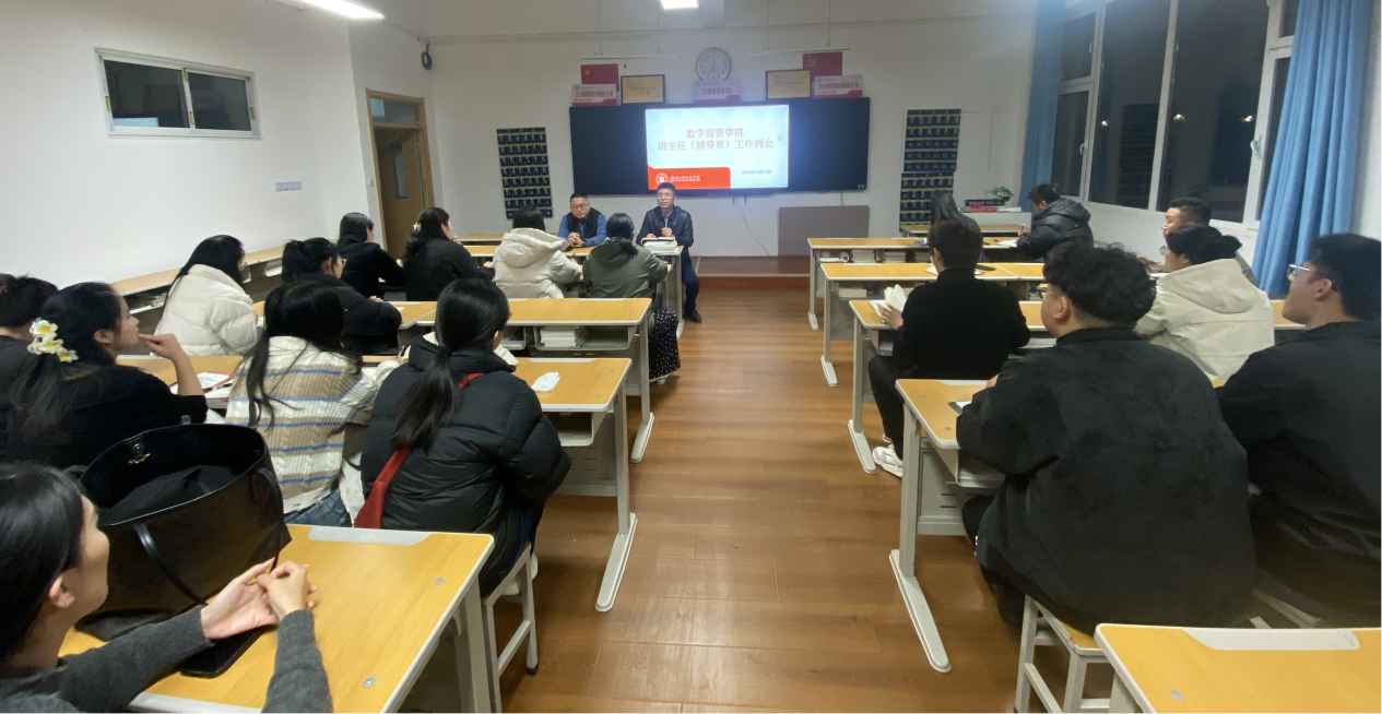 2025年11月11日17:30,数字商贸学院在智贸楼A203教室召开了班主任(辅导员)工作例会。学院党总支书记、院长杨保福及全体班主任、辅导员参加会议,会议由副院长杨振辉主持。