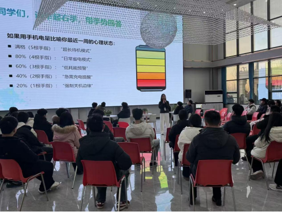 讲座以“从心出发,向阳而生”为主题,由学院心理中心专职教师王然然主讲。王老师结合学生日常生活中的常见情境,围绕心理健康的自我觉察、情绪管理技巧、有效沟通方式等内容展开了生动讲解。她通过贴近实际的案例、通俗易懂的语言,引导学生正确认识心理困扰,掌握积极应对策略,学会在日常学习与生活中调适情绪、建立良好人际关系。讲座现场气氛活跃,互动环节中同学们踊跃提问,王老师一一给予耐心细致的解答。