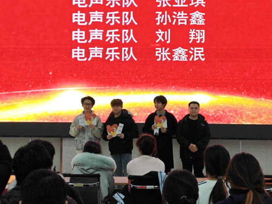 紧接着激动人心的颁奖仪式成为活动亮点。仪式开始前,一段温情满满的回顾视频缓缓播放,定格了社员们排练、备赛、获奖的珍贵瞬间,引发全场共鸣。本次颁奖共设立和声标兵星途挚友护航先锋三大奖项,经严格审核全年出勤及表现确定获奖名单。其中,曾诗凯、赵诗雨等15名社员获和声标兵称号,他们以全勤坚守诠释责任担当,用无声付出奏响动人和声;张亚琪、孙浩鑫等4名社员获星途挚友称号,以温暖陪伴为团队注入凝聚力;邓鹦壤、刘洪彬获护航先锋称号,以细致服务为团队发展筑牢保障。学工处老师及指导老师为获奖社员颁发荣誉证书与奖品,真挚的感言引发全场共鸣,掌声持续不断。