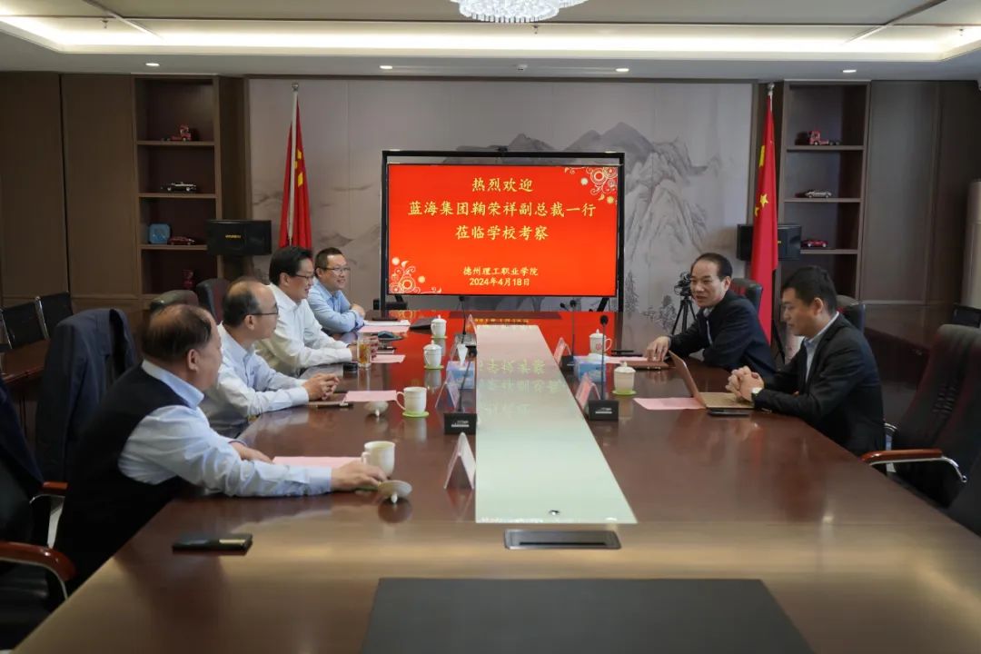 在座谈会上,魏荣庆介绍了德州理工职业学院总体情况。鞠荣祥对蓝海集团进行了详细介绍。随后,双方围绕产教融合、合作育人以及项目合作进行了深入交流和探讨。