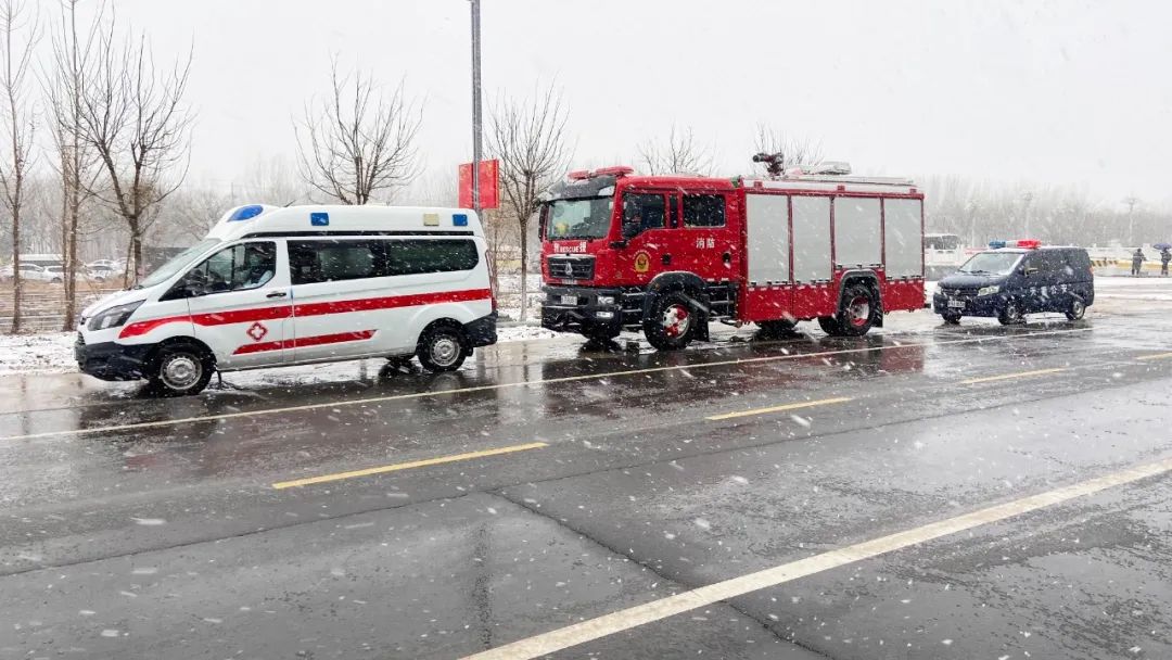 考试当日,德州迎来大范围降雪,百余名师生志愿者齐上阵,清扫积雪、铺设防滑垫。扫雪车也在第一时间出动,确保校园主干道和考场通道畅通无阻。