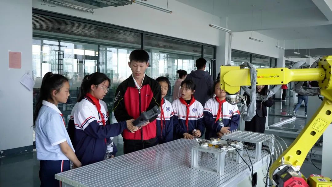 在先进制造学院实训中心,同学们参观了3D打印实验室,观摩了工业机器人精准操作的演示,并动手实践操控机械臂、试飞无人机,近距离体验“工匠精神”的深刻内涵;参观了先进制造、智慧交通专业群实训场所,深入了解相关专业的技术应用与发展前景。