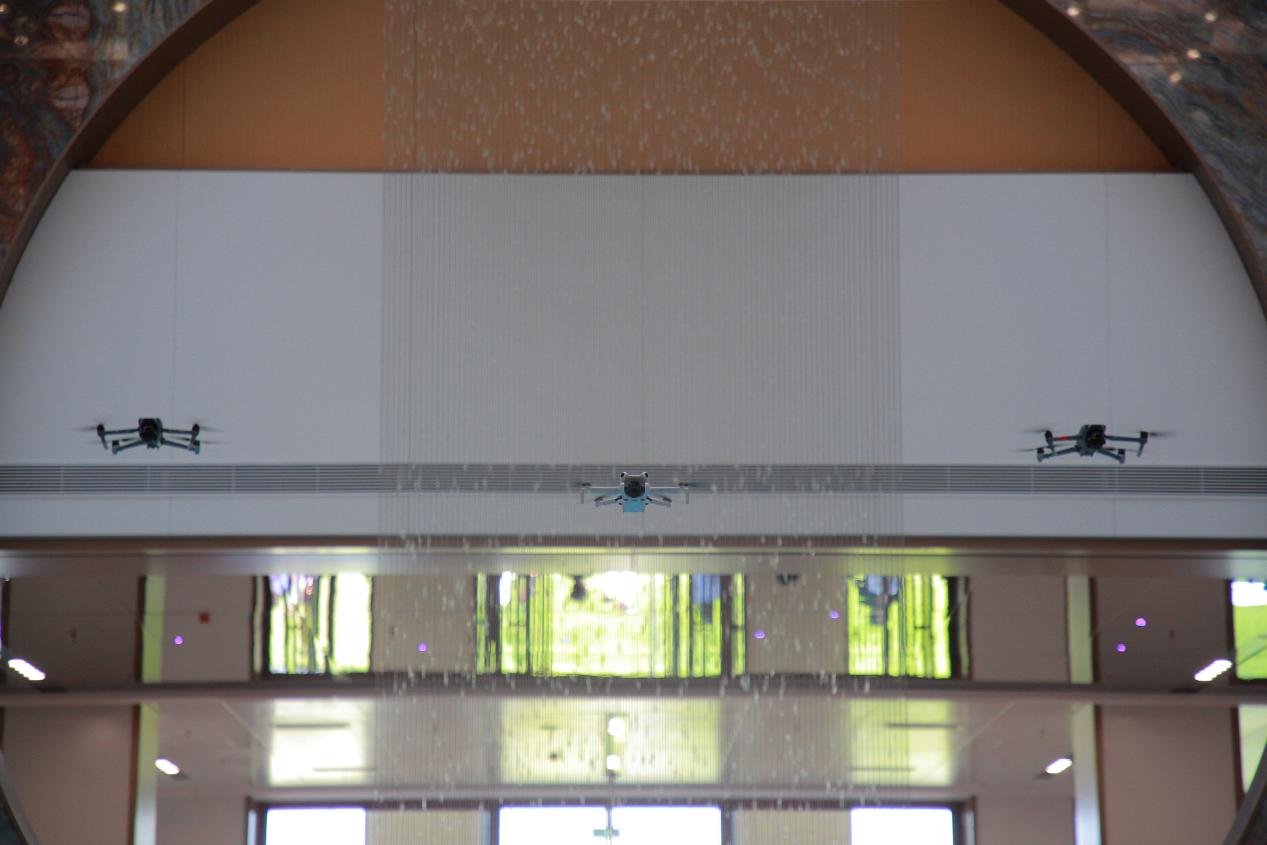在迎新现场,多架无人机化身“空中向导”,承担起多项实用功能。它们搭载高清摄像头,实时巡查各报到点人流密度,画面同步传输至迎新指挥中心,工作人员据此灵活调配志愿者,快速疏导高峰人群,有效缩短了新生的排队等待时间。而在复兴大厦的“科技体验区”,3D打印技术则让新生直观感受到创新的魅力,这些都为新生创造了良好学习环境和氛围。