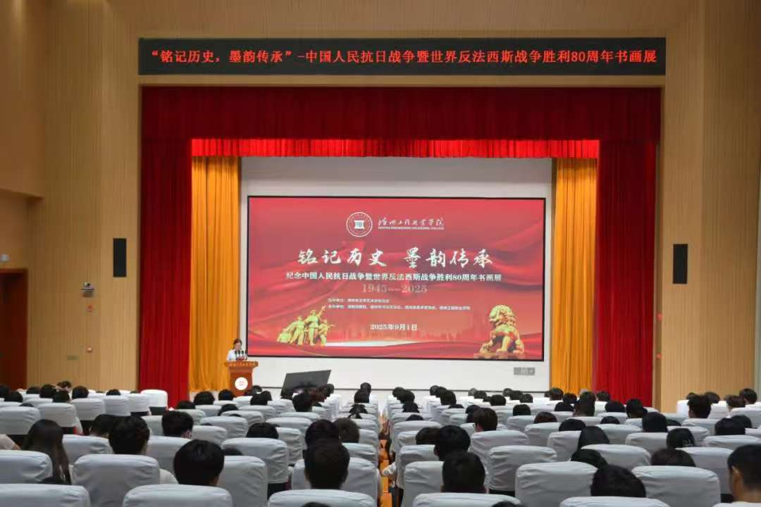 今年是中国人民抗日战争暨世界反法西斯战争胜利80周年。为缅怀先烈、铭记历史,弘扬爱国主义精神和伟大抗战精神,增强师生爱国爱党爱校情怀,9月1日上午,由德州市文学艺术界联合会指导,法制日报社、德州市书法家协会、德州市美术家协会与德州工程职业学院联合主办的“铭记历史,墨韵传承”主题书画展在复兴大厦隆重开幕。