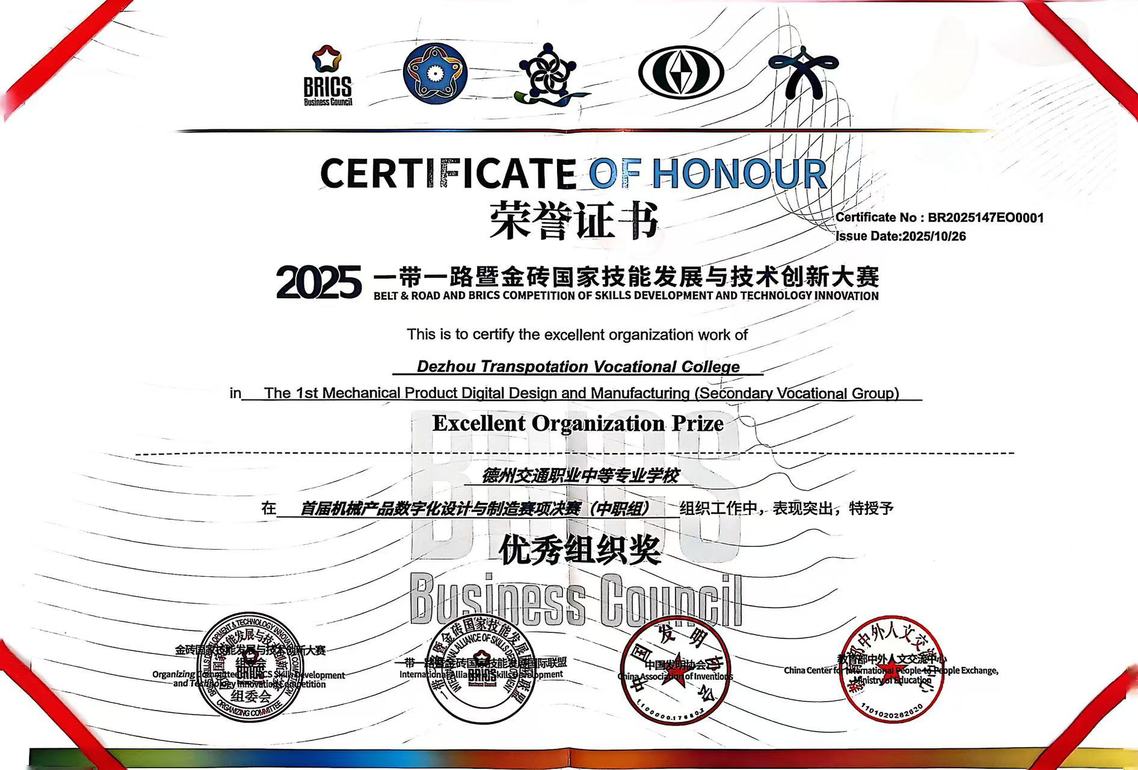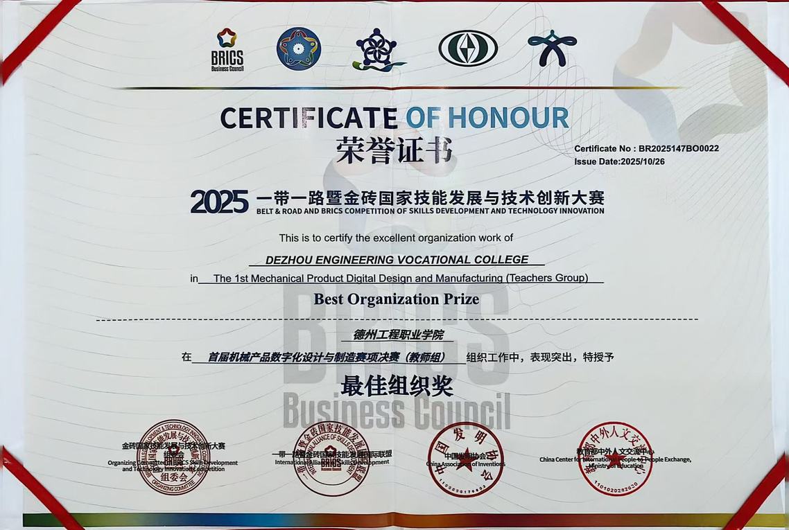 本次大赛规格高、影响力广,具有重要国际意义。作为经金砖国家最高领导人会晤筹备委员会认可、并经中国外交部备案的官方国际赛事,本项大赛已连续九年作为重要成果呈送金砖国家元首,在政治层级、国际影响及产业价值方面具有不可替代的地位。作为国家级A类竞赛,它不仅是衡量职业院校办学水平的核心指标,更深度对接《中国制造2025》等国家战略,紧密服务于制造业智能化转型的前沿需求,凸显了我院师生获奖成果的高含金量。