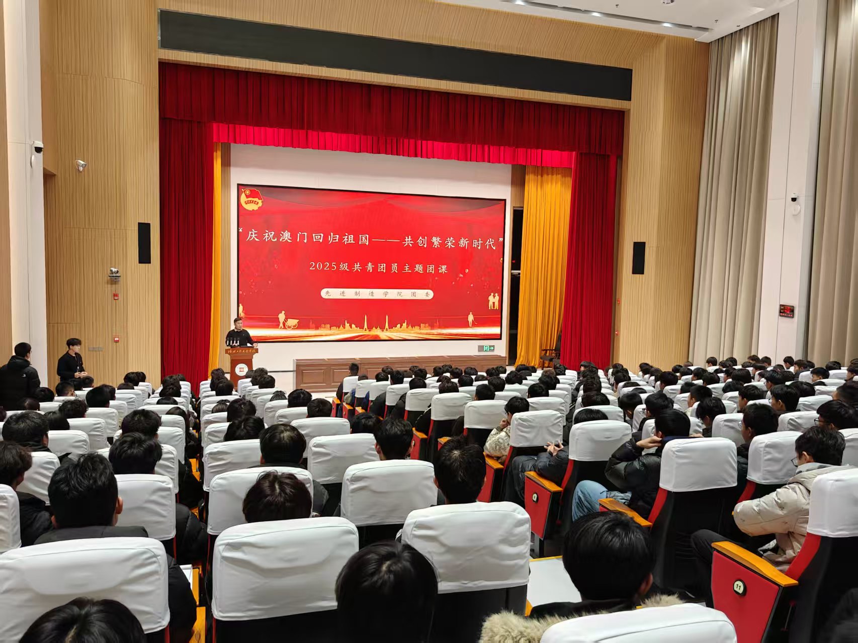 2025年,是澳门回归祖国26周年。为弘扬爱国爱澳精神,增进青年对澳门发展成就的认识,凝聚奋进新征程的共识,先进制造学院团总支特别策划开展以“庆祝澳门回归·共创繁荣时代”的主题团课活动,先进制造学院2025级全体入团积极分子、各班团支书参加。