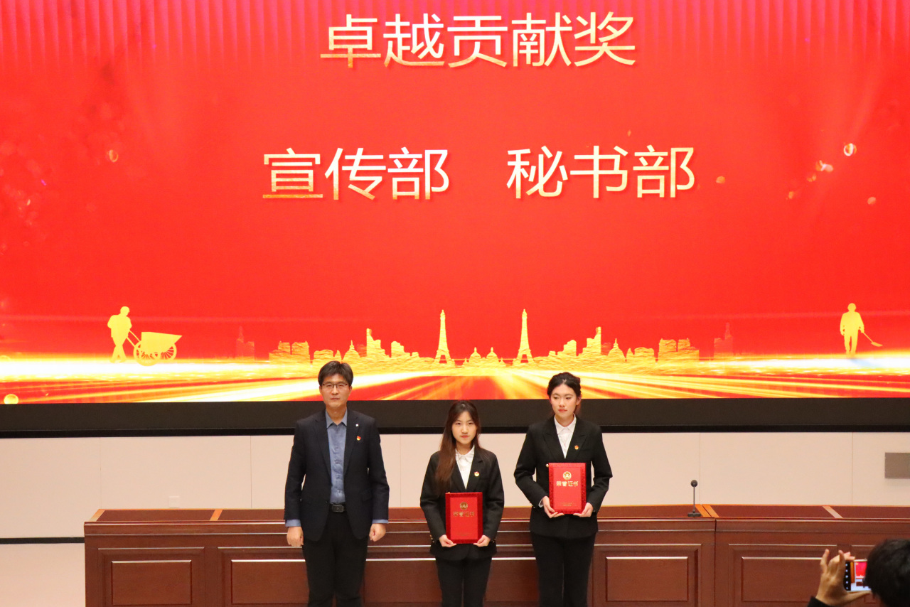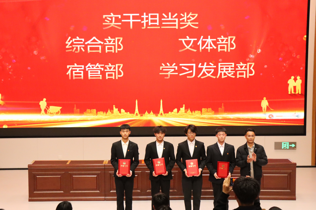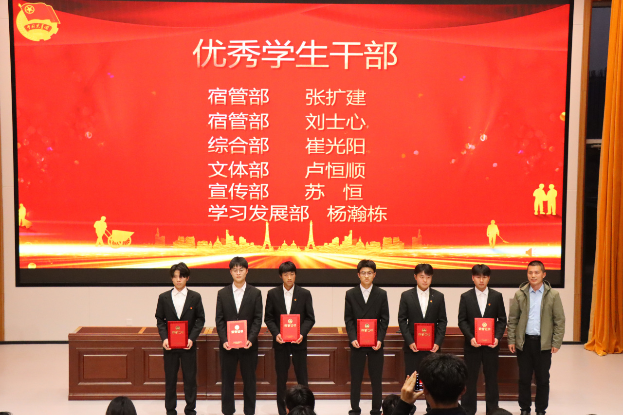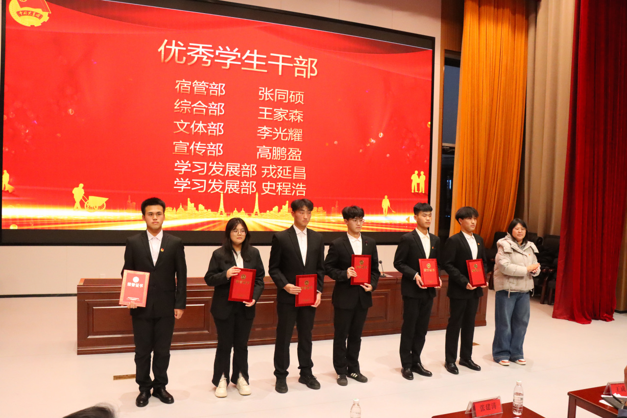 最令人激动的表彰环节如期而至!“优秀学生干部”“优秀学生干事”名单揭晓,获奖同学依次上台领奖,领导老师为他们颁发荣誉证书并合影留念。闪耀的证书不仅是对他们辛勤付出的认可,更成为全场学子学习的榜样,激励着大家在服务同学、奉献学院的道路上继续前行。