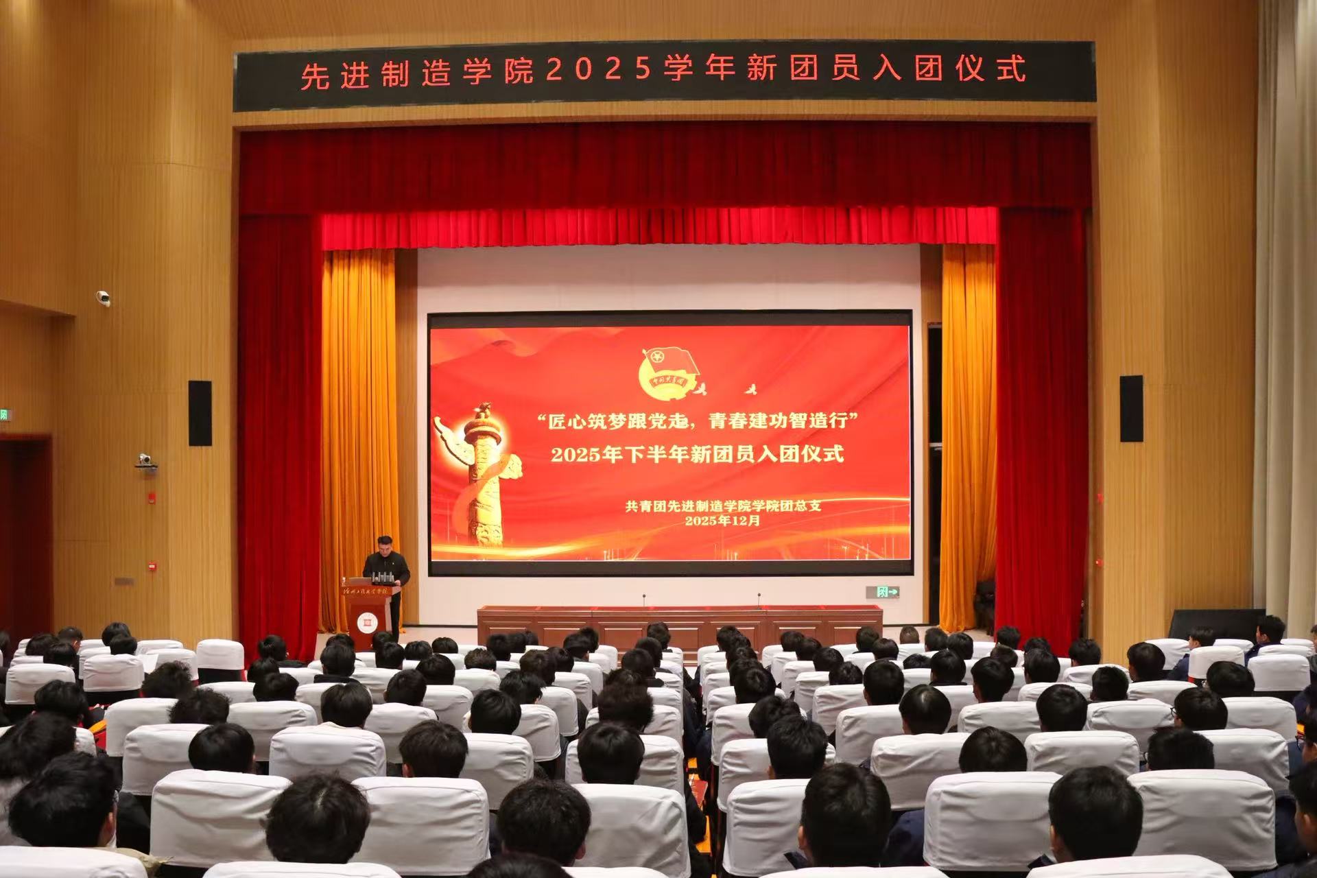 青春逢盛世,奋斗正当时。为传承红色基因,凝聚青春力量,引导青年学子坚定理想信念,近日,先进制造学院“匠心筑梦跟党走,青春建功智造行”主题入团仪式在学校报告厅隆重举行。学院党总支书记张建涛、副院长展瑞娇、学教副院长王成龙及全体辅导员、班主任出席仪式,与新团员们共同见证这一光荣时刻。