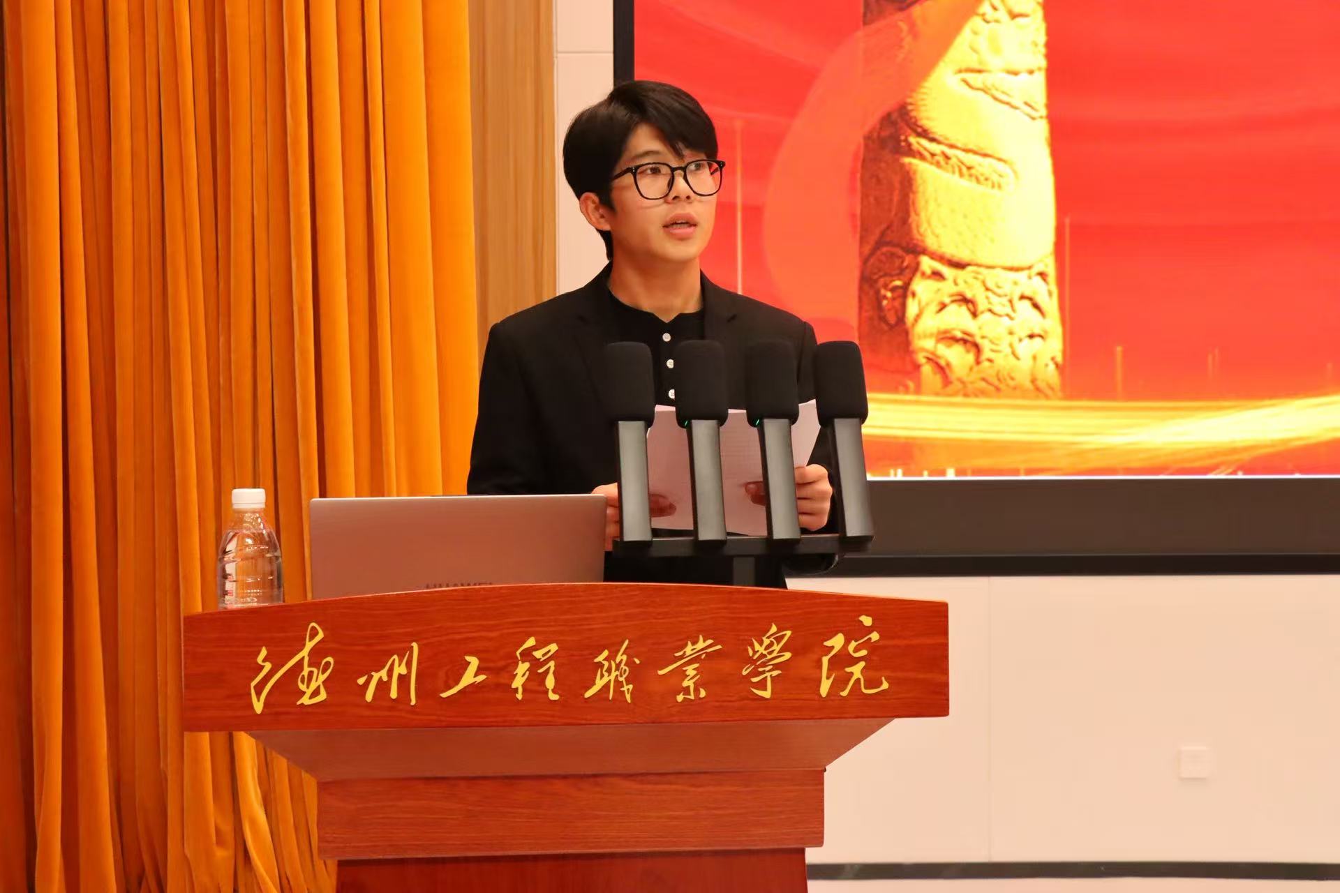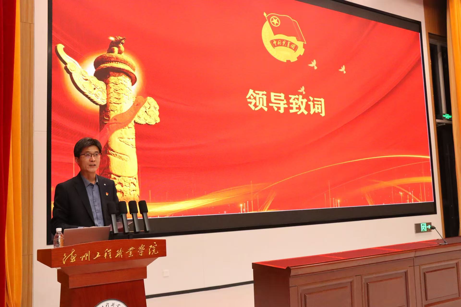学院党总支书记张建涛作为优秀党员老师,为新团员们送上殷切寄语。他结合党员先锋模范践行经验,强调了共青团的使命担当,明确了团员的成长要求,鼓励青年学子既要秉持精益求精的工匠精神,练就过硬专业本领,也要胸怀家国情怀,坚定不移跟党走,在青春赛道上奋力奔跑,向党组织靠拢。