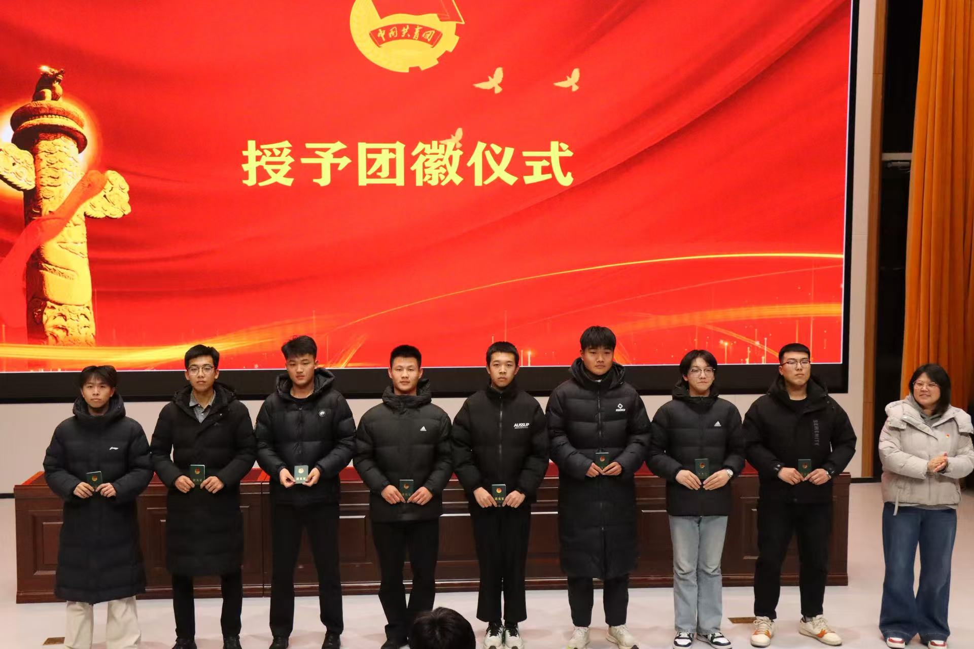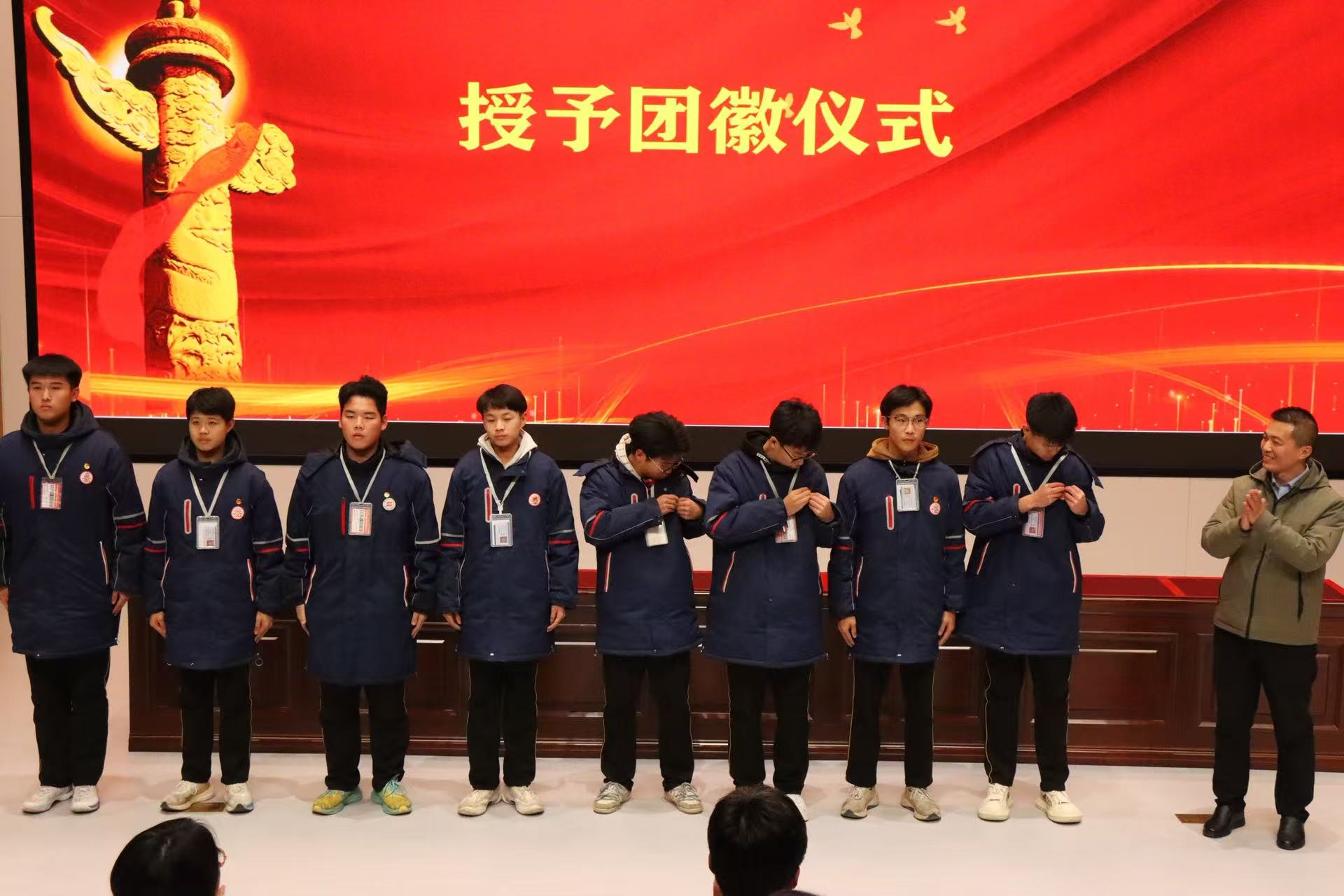 随后,展瑞娇院长和王成龙院长为新团员佩戴团徽、颁发团员证与入团志愿书。熠熠生辉的团徽佩戴在胸前,不仅是一份荣誉的象征,更是一份责任的传递。新团员们神情庄重,指尖轻抚团徽,深刻感受到共青团员身份所承载的使命与担当。