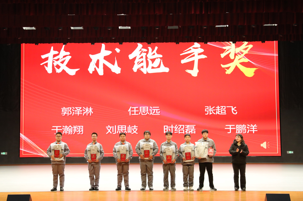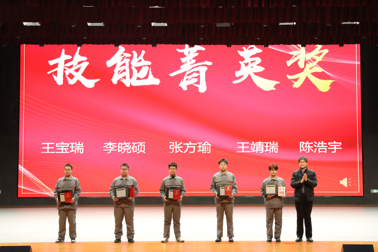 颁奖环节高潮迭起,激昂的背景音乐中,获奖师生分批登台领奖。学生组中,王宝瑞等5人获“技能菁英奖”,郭泽林等7人获“技术能手奖”,王志远等7人获“创新突破奖”,格月茹等21人分两轮获“职业风范奖”;教师组里,王兆宁、任永鑫获“金牌教练奖”,吴英华等4人获“卓越导师奖”,张馨予等6人获“匠心育人奖”。领导们为获奖者颁发荣誉,台下掌声雷动,致敬每一份坚持与收获。