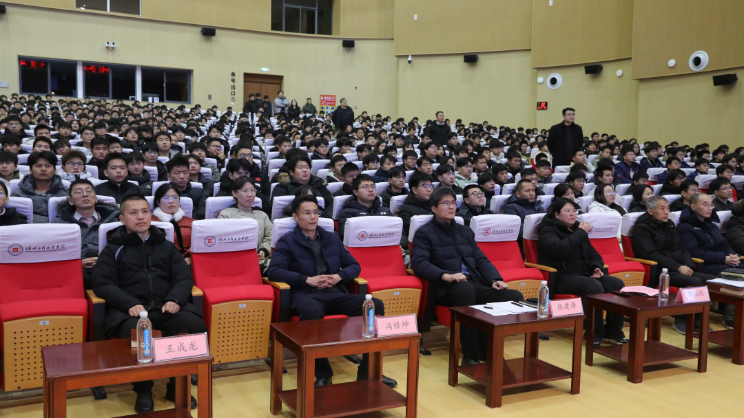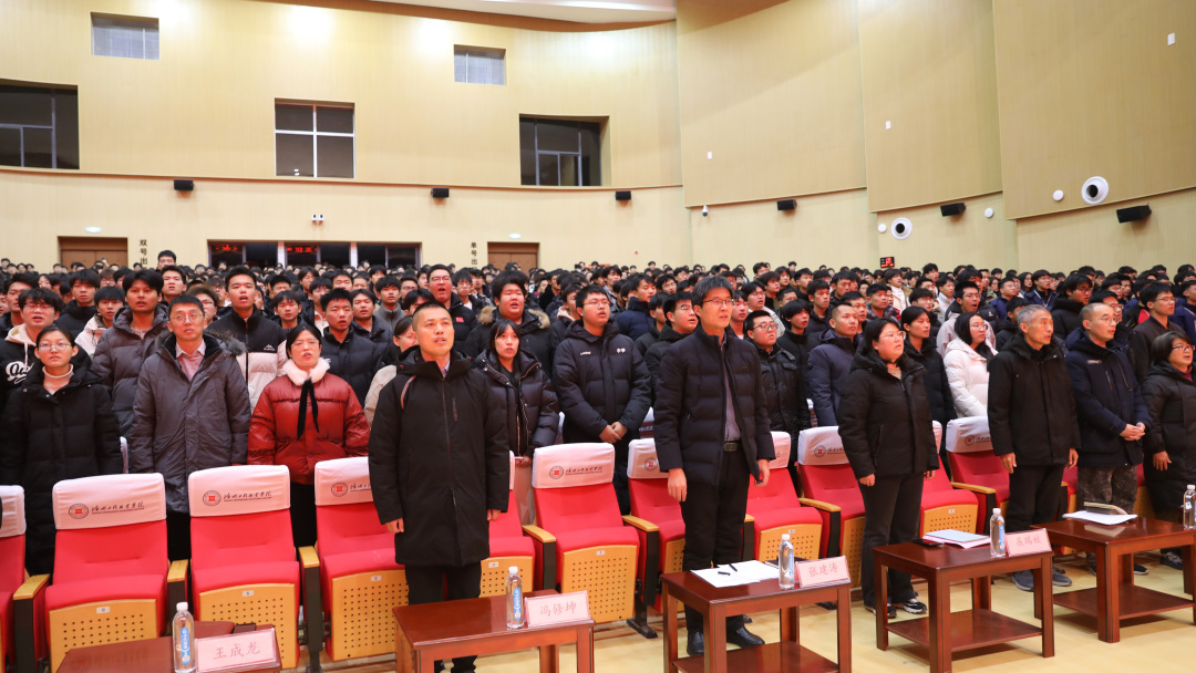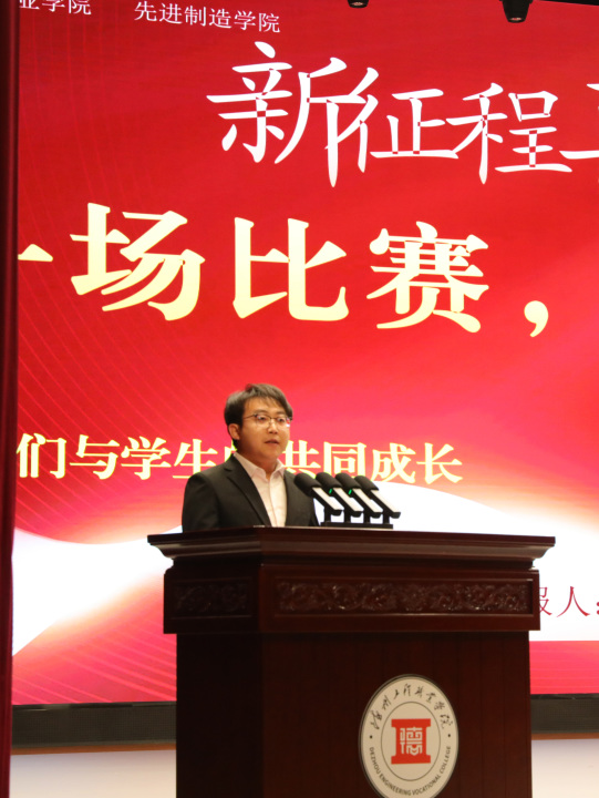 星光不负赶路人,技能成就追梦人。2026年1月7日,德州工程职业学院先进制造学院2025年度职业技能竞赛表彰大会在新青年剧场隆重举行。学院党总支书记张建涛同志、学工处副处长冯修坤同志、学院副院长展瑞姣同志、学院学教副院长王成龙同志、实训室主任李磊同志(主持人)以及全体教师出席大会,与受表彰师生、师生代表共同见证荣耀时刻,弘扬工匠精神,共话技能成才之路。