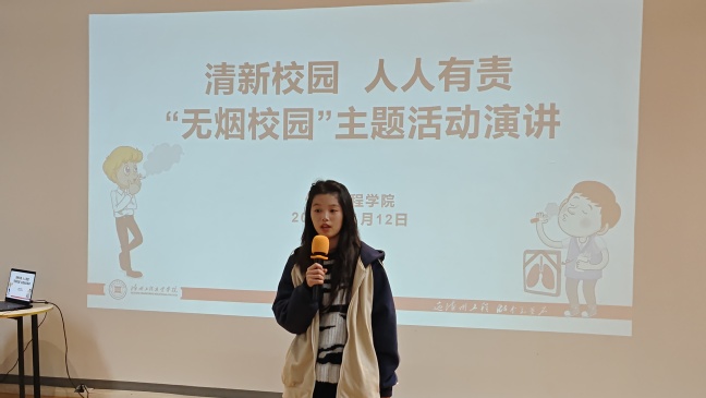 为营造积极阳光的校园环境,引导学生养成健康的生活习惯,根据《教育部办公厅卫生部办公厅关于进一步加强学校控烟工作意见》(教体艺厅〔2010〕5 号)《教育部关于在全国各级各类学校禁烟有关事项的通知》(教基一函〔2014〕1 号)要求,信息工程学院策划举办“无烟校园”主题演讲活动,旨在通过学生们的亲身讲述和呼吁,进一步推动校园禁烟工作,营造清新、健康的学习生活环境。