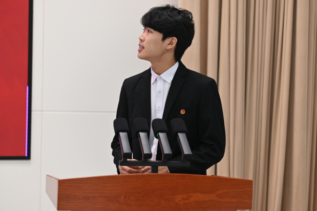 主持人胡兴隆老师作总结发言。他勉励全体同学将今日所学、所感、所悟内化于心、外化于行,让伟大的抗美援朝精神在实现民族复兴的征程中薪火相传,用挺膺担当的实际行动,书写无愧于时代的青春华章。