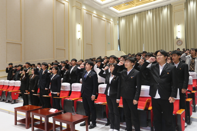 活动在庄严的国歌声中拉开帷幕。全体师生肃立,齐声高唱中华人民共和国国歌,雄壮的旋律激荡着每个人的爱国情怀,为本次活动奠定了崇高而肃穆的基调。随后,全体团员面向团旗,重温入团誓词。铿锵有力的誓言在会场久久回荡,彰显了团员青年不忘初心、牢记使命的坚定信仰与精神传承。