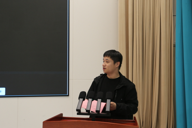 纪录片放映结束后,两名团员代表走上讲台,围绕抗美援朝战争的历史背景、重要战役和英雄人物进行了系统梳理与分享。他们的讲述脉络清晰、史料详实,既丰富了大家对这段历史的认知,也在娓娓道来中唤起了对革命先烈更深切的缅怀与敬仰。