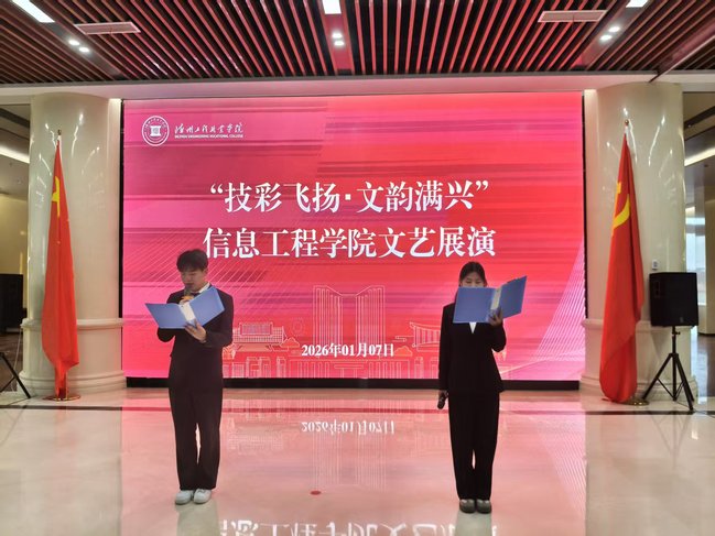 为积极响应校团委“深化复兴大厦育人功能”的总体部署,丰富学生校园文化生活,1月7日下午,德州工程职业学院信息工程学院“技彩飞扬・文韵满兴”文艺展演在复兴大厦一楼展堂成功举办。学院全体学生踊跃参与,以多元艺术形式展现了信息学子“专业技能与文化素养”协同并进的青春风采。