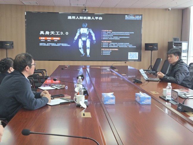 近日,北京人形机器人创新中心专家赵强、张雪到访德州工程职业学院,双方在复兴大厦会议室举行技术交流会。信息工程学院院长吕鹏飞、副院长陈瑶、实训教学科长付豪共同参会,围绕人形机器人数据采集、模型训练及职业人才培养等议题展开深入探讨。