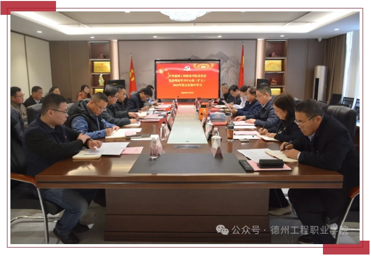 11月27日,学校党委理论学习中心组2024年第五次集中学习在学校双创中心三楼会议室举行。德州市委教育工委办公室主任姚宏勇出席会议指导学习,党委代书记魏荣庆主持集中学习并讲话,党委理论学习中心组成员,组织人事处、宣传统战部负责人,学工、教务、机关、后勤党总支负责人,二级学院党总支书记、院长以及相关部门负责人参加学习。