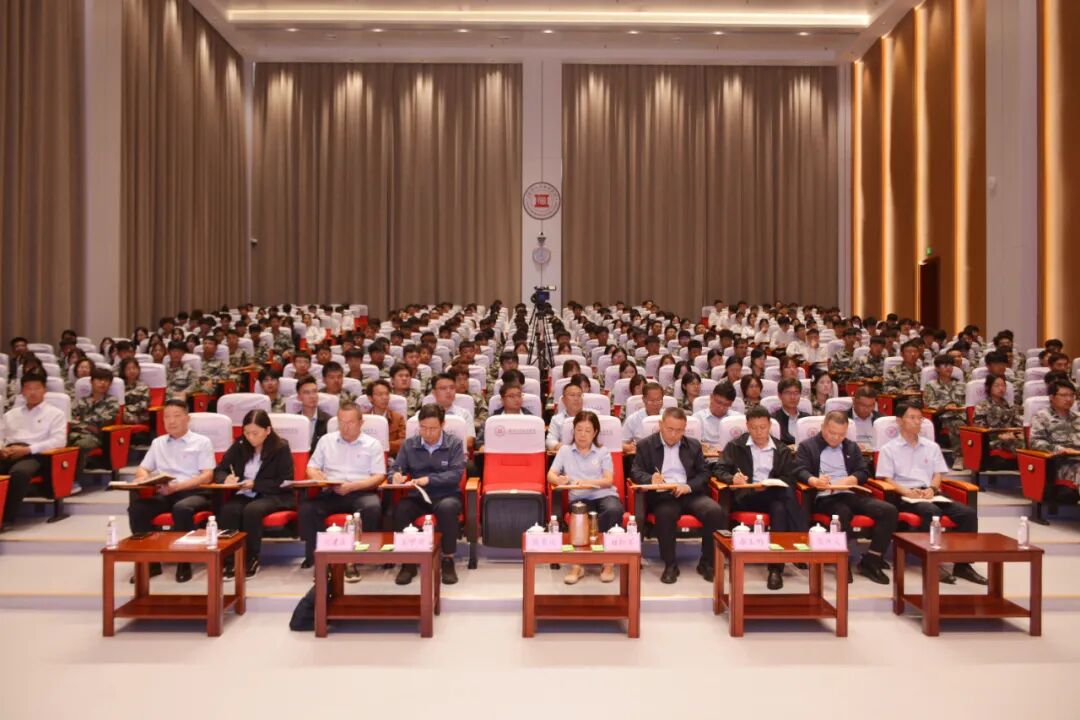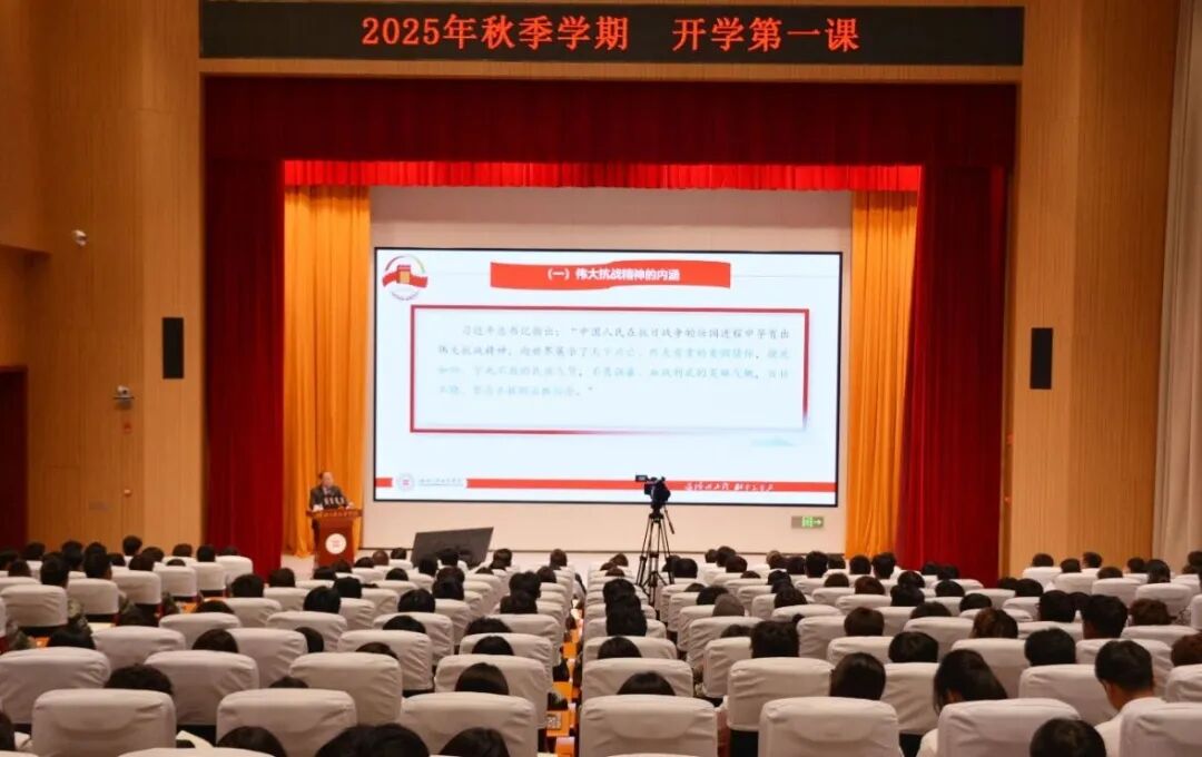 9月22日,德州工程职业学院复兴大厦报告厅内,一场关于历史、现在与未来的对话深深叩击着每一位学子的心扉。校长魏荣庆以“传承红色基因、担当强国使命”为题,为全体学生讲授了一堂激情澎湃的“开学第一课”。这堂课,既是2025级新生的“大学启航仪式”,更是一堂面向全体学生的“思想政治金课”。他从弘扬抗战精神、技能报国以及“以学生为中心”等三个方面进行阐述,为新学期拉开了理想信念教育的序幕。