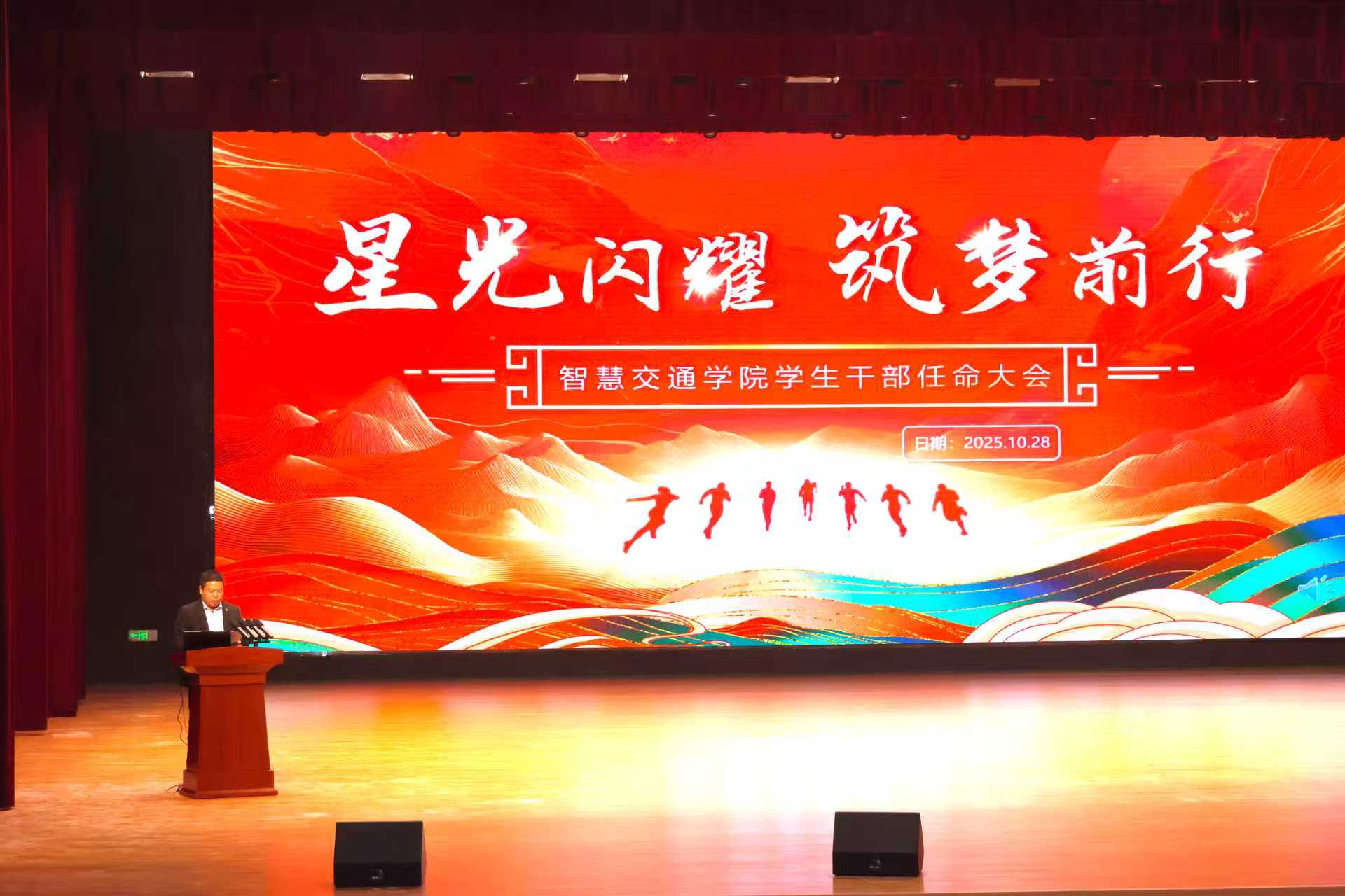为深入引导青年学子坚定理想信念、涵养高尚品德,切实加强学生组织建设,近日,智慧交通学院学生会换届大会暨学生干部表彰仪式顺利举行。学院党总支副书记申志威担任会议主持人,智慧交通学院党总支书记兼院长瞿忠军、教学副院长王圣利、学管主任刘光林、教学科长李剑锋及全体班主任、学生代表共同参会。