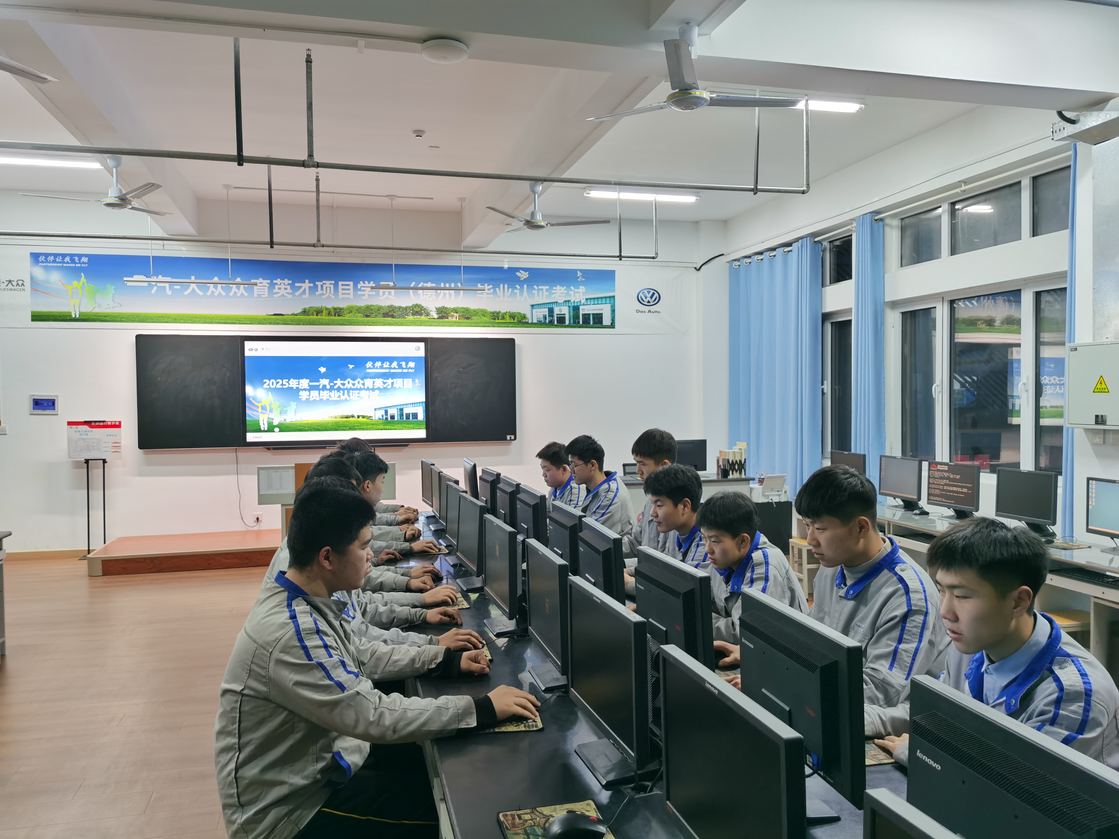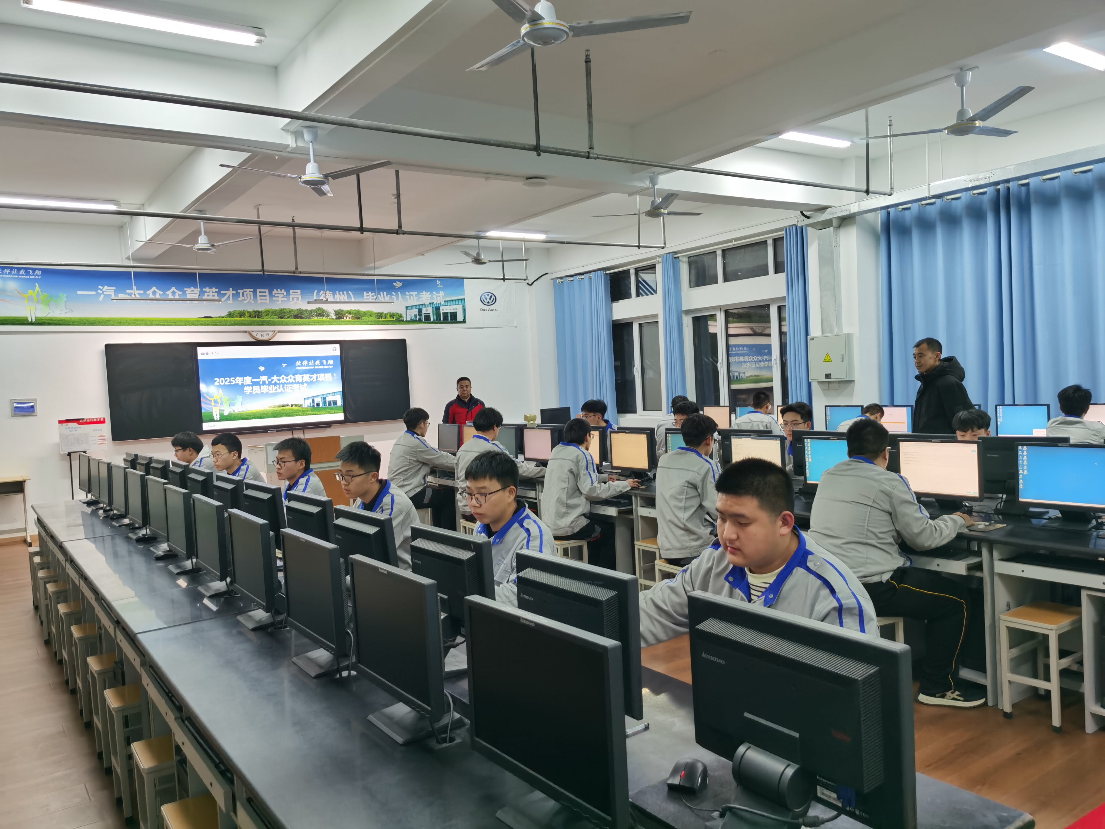 作为一汽大众“卓越人才计划”项目核心合作院校,我校自2012年起与一汽大众共建联合“众育英才”项目自启动以来,始终坚持“课岗融通、工学结合”的育人理念,依托一汽-大众先进的技术标准和人才培养体系,构建了从入学到就业的全链条成长路径。此次理论考核由一汽-大众培训体系提供标准支持,试题内容覆盖广泛、难度严谨,全面考察学生的综合知识掌握能力。34名学员均完成规定课程学习,并通过阶段性模拟测试,最终全部顺利通过理论考试。