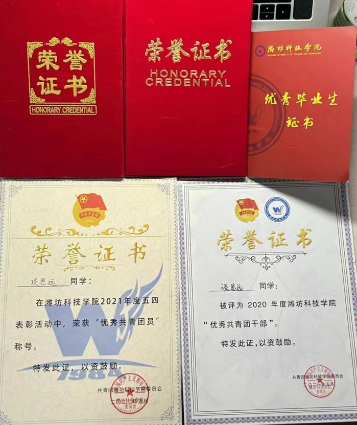 在潍坊科技学院就读汽车服务工程专业的谈思远是一位兢兢业业、富有活力的学生。他不仅在学业上取得了优异的成绩,还积极参与校园活动,展现了出色的领导才能和团队合作精神。谈思远同学在学校期间担任了学生会干部和学委,为同学们的学习和生活提供了积极的服务和支持。他以身作则,引领同学们参与各项活动,促进了校园文化的丰富多彩。