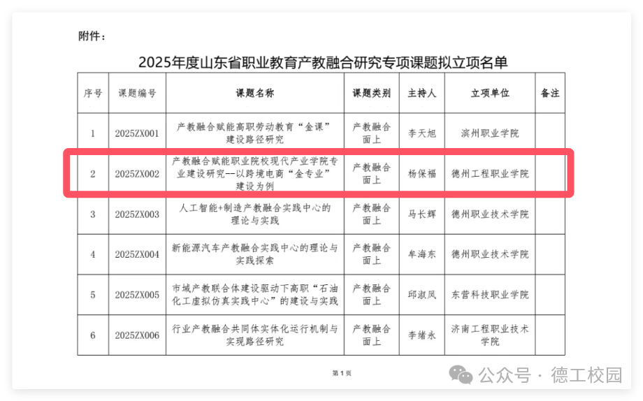 12月25日,山东省职业教育和产业人才研究院对2025年度山东省职业教育产教融合研究专项课题遴选结果进行公示。在全省立项的140项课题中,我校数字商贸学院党总支书记、院长杨保福主持的《产教融合赋能职业院校现代产业学院专业建设研究——以跨境电商“金专业”建设为例》课题成功入选产教融合面上项目。