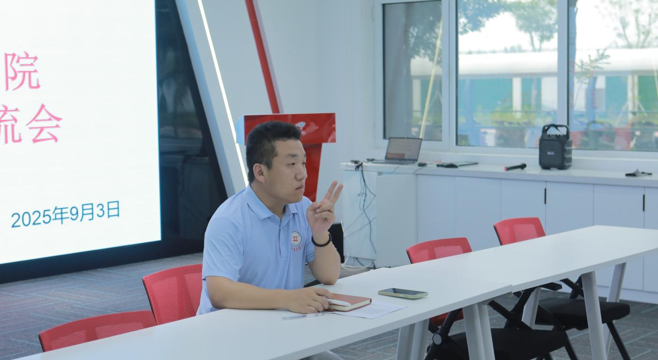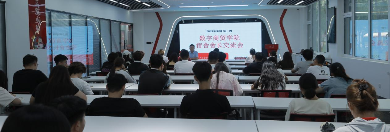 2025年9月3日17:30,数字商贸学院在京东一楼北侧会议室召开宿舍长交流会,由闫巨成老师主持,各宿舍长参与本次会议。
