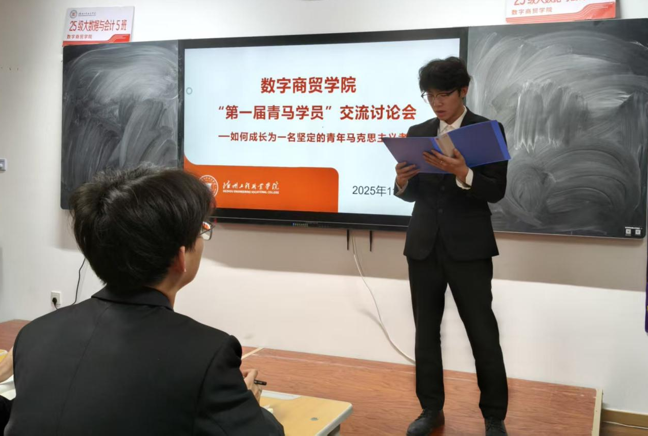 为深化青年马克思主义者培养工程建设,推动学员理论学习与实践成长深度融合。2025年11月12日下午四点,数字商贸学院青马工程交流研讨会在智贸楼C216成功举行,学院24级青马工程班全体学员参与本次研讨。