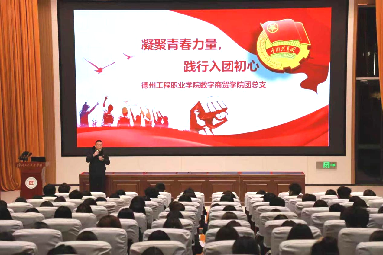 为深入贯彻落实新时代共青团改革要求,加强对入团申请人的培养.教育和考察,增强共青团员的先进性和光荣感,2025年11月19日19:00,数字商贸学院团总支在复兴大厦一楼东报告厅开展以“凝聚青春力量,践行入团初心”为主题的入团申请人集中谈话会议。学院党总支书记、院长杨保福,副院长杨振辉及24级、25级入团申请人参会,本次会议由孙延鹏老师主持。
