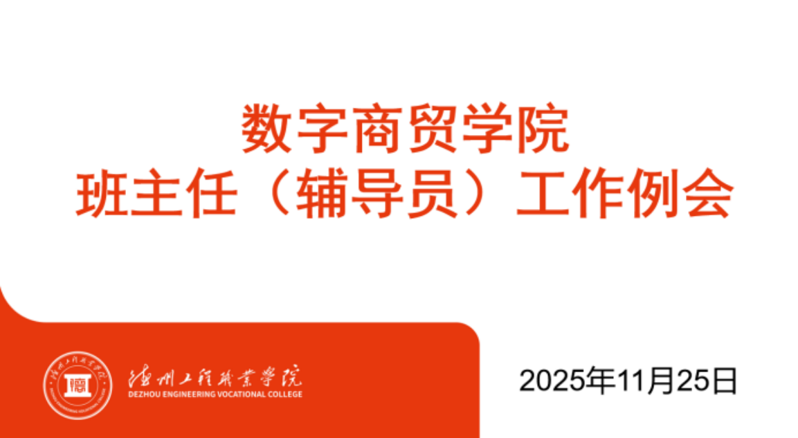 2025年11月25日17:00,数字商贸学院在京东一楼北侧会议室召开班主任(辅导员)工作例会。数字商贸学院副院长杨振辉,以及全体班主任(辅导员)参加会议。