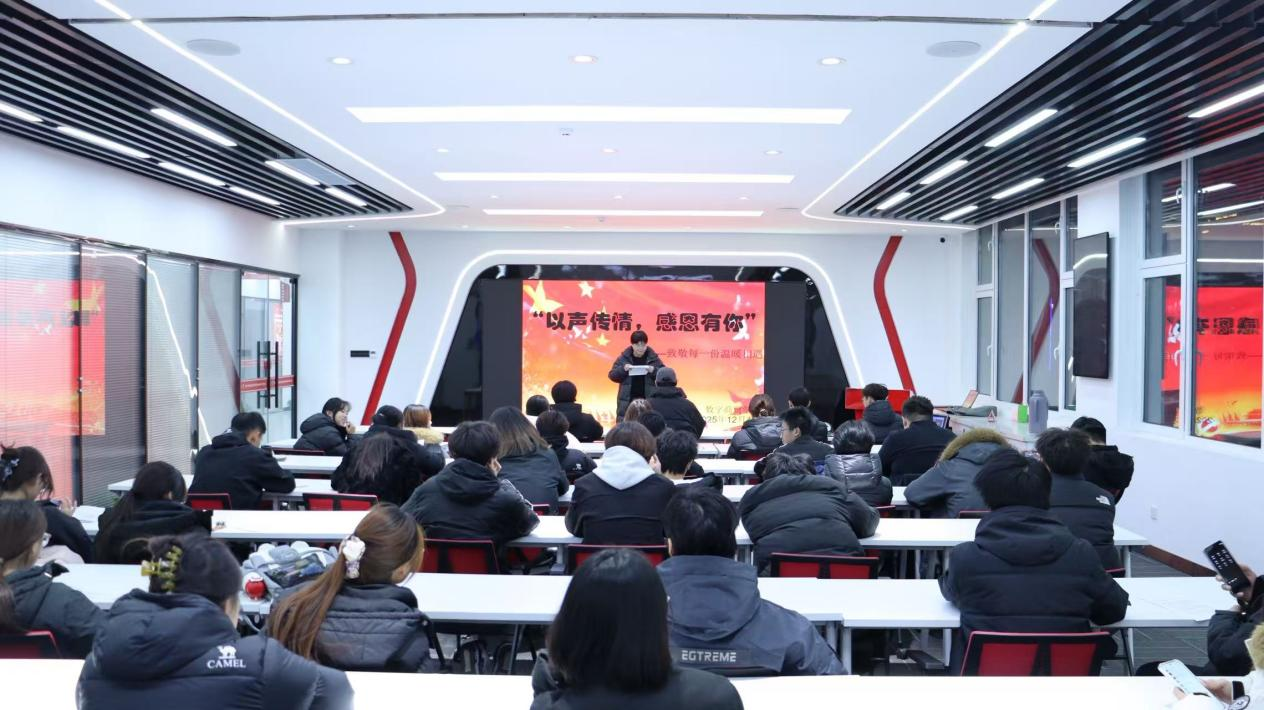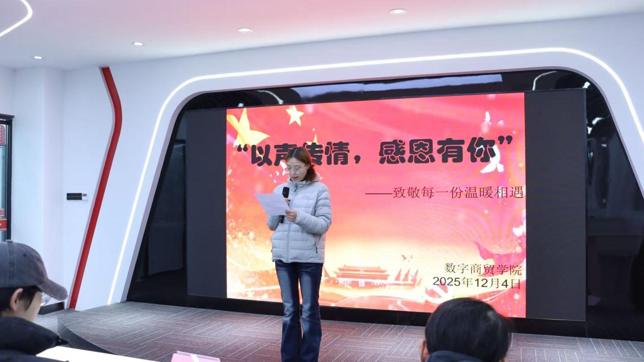 为营造“懂感恩、善表达”的校园人文环境,丰富校园文化生活,提升学生的语言表达和情感传递能力。12月4日,数字商贸学院在京东一楼北侧会议室举办“以声传情,感恩有你”为主题的朗诵比赛,本次比赛由数字商贸学院基层团委学生会主办。