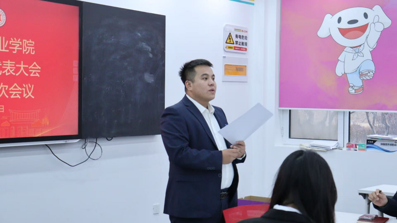 会议开始之际,左奔对本次会议的背景和意义予以了阐述。会议的第一项议程,传达了代表团召集人会议的精神。他特别强调,本次学生代表大会在学院青年学生的政治生活中具有重大意义,各位代表应当提高政治站位,以高度的责任感和使命感投身于大会的各项工作;严格遵守大会纪律,维护会场秩序,按时参加会议和活动;要认真履行代表职责,积极提出具有建设性的意见和建议。