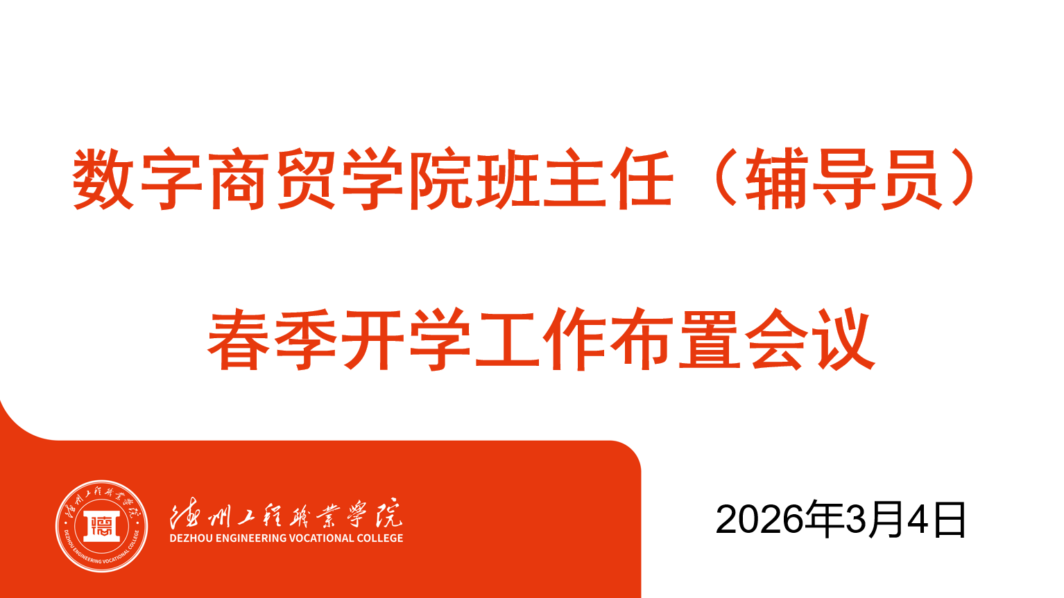 为推进春季开学各项工作有序开展,2026年3月4日17时,数字商贸学院在京东一楼会议室召开班主任辅导员春季开学工作布置会议,学院党总支书记、院长杨保福,行政副院长杨振辉及全体班主任、辅导员参加会议,会议由杨振辉主持。