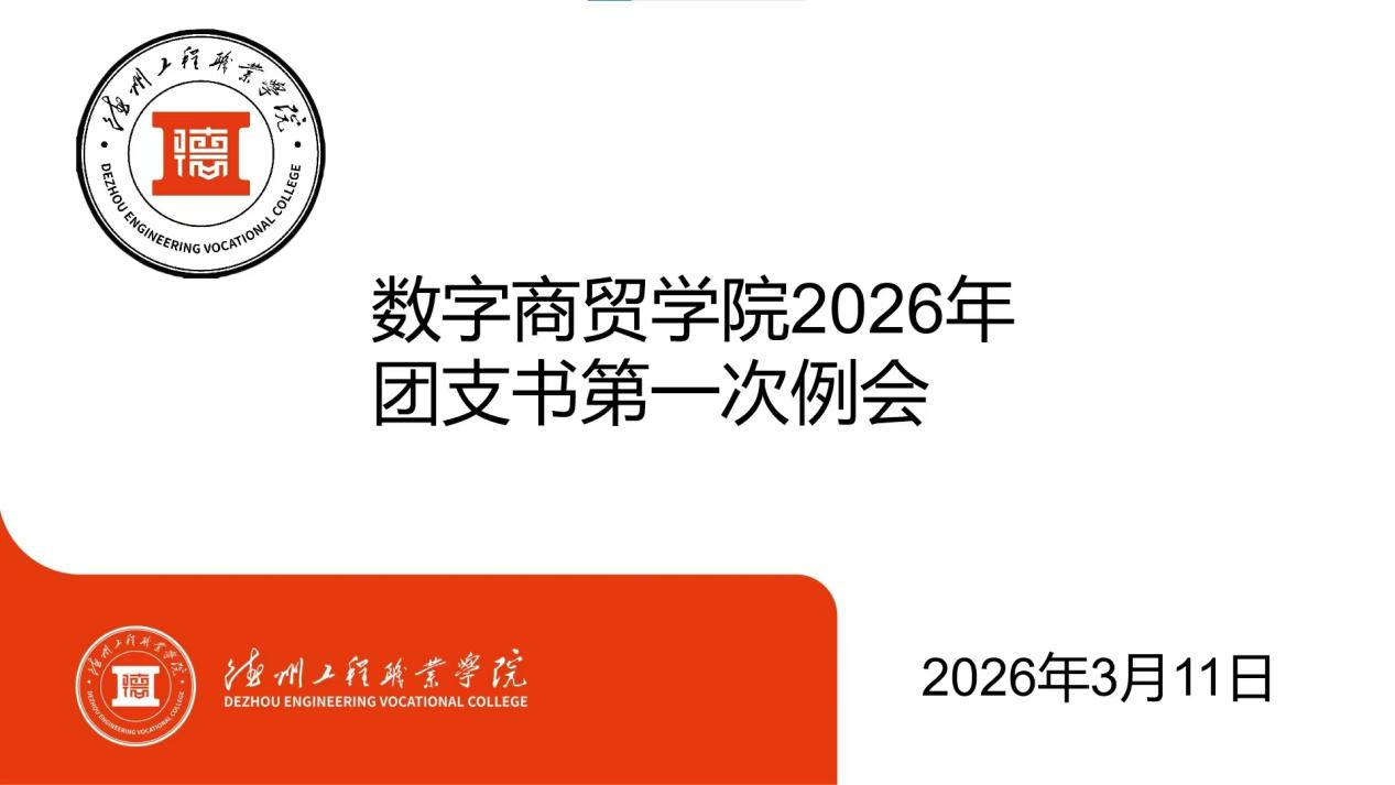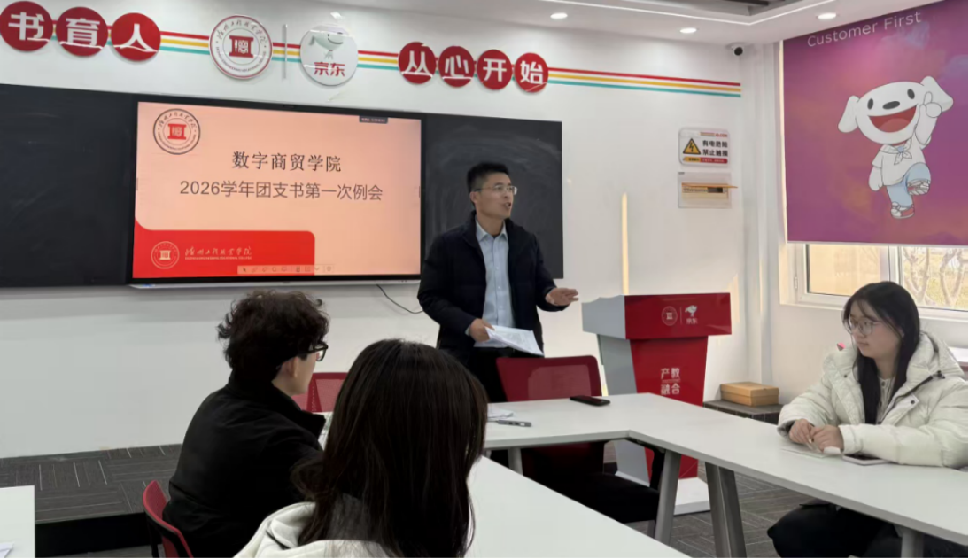 为进一步加强基层团组织建设,推动各项团学工作落实,2026年3月11日15:50,数字商贸学院在京东一楼南侧会议室召开2026年团支书第一次例会,副院长杨振辉及24级25级各班团支书参加会议,辅导员孙延鹏老师为本次例会主持人。