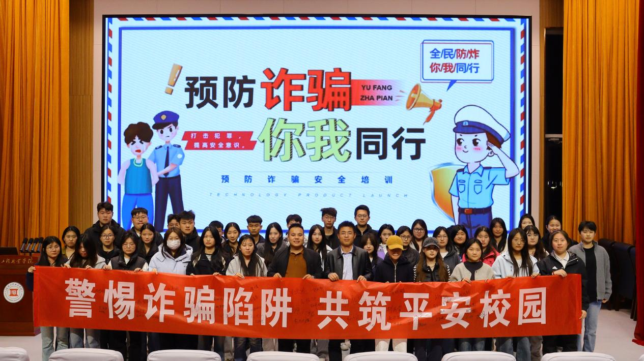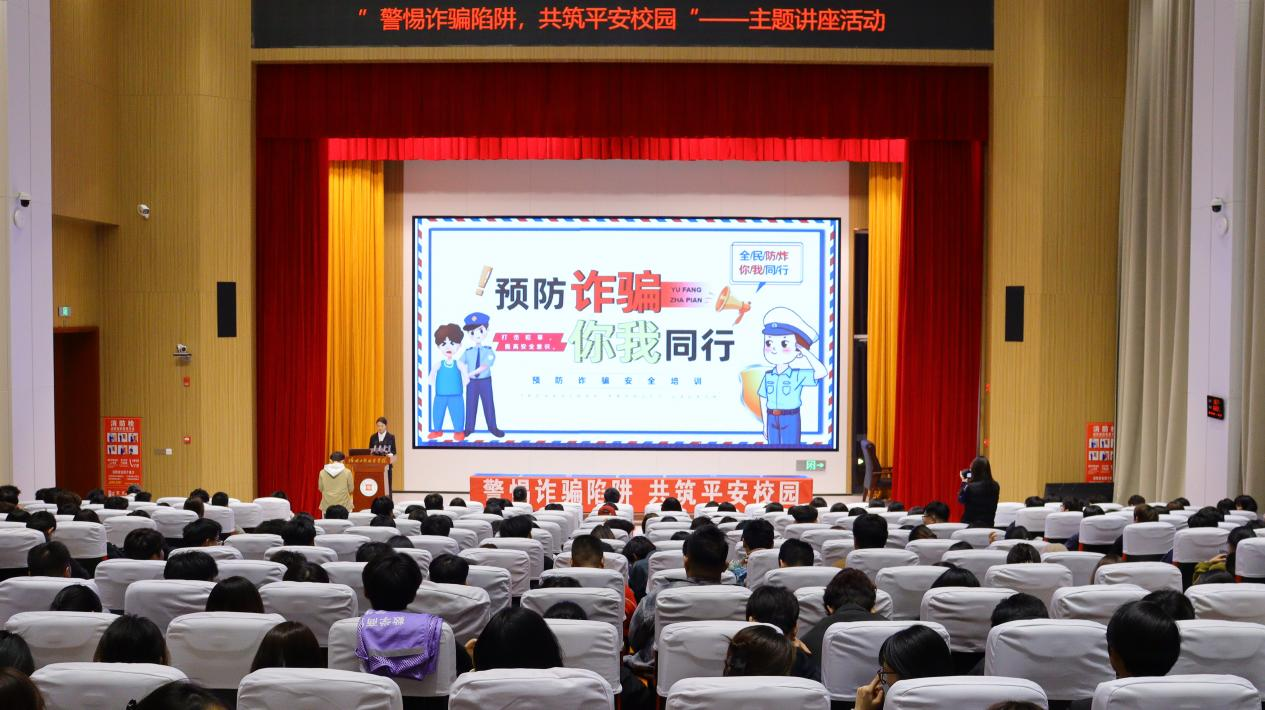 为提升学生反诈防骗意识和自我保护能力,守护学生财产安全,2026年3月25日19:00,数字商贸学院于复兴大厦泰山厅开展“警惕诈骗陷阱,共筑平安校园”反诈安全知识讲座。本次讲座由副院长杨振辉主讲,辅导员老师左奔以及学院25级学生参与,讲座由盛煜婷主持。