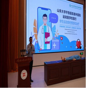 在医疗健康知识科普环节,山东大学齐鲁医院德州医院的专家们围绕运动损伤预防、急救技能、体态矫正等主题,开展了五场精彩讲座: