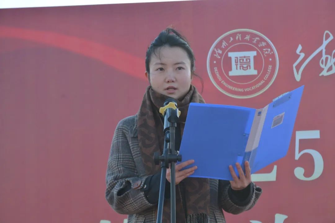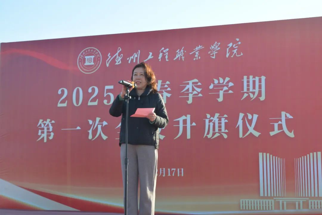 2月17日,德州工程职业学院全体师生齐聚体育场,举行春季学期第一次升旗仪式,副校长赵红军主持活动。