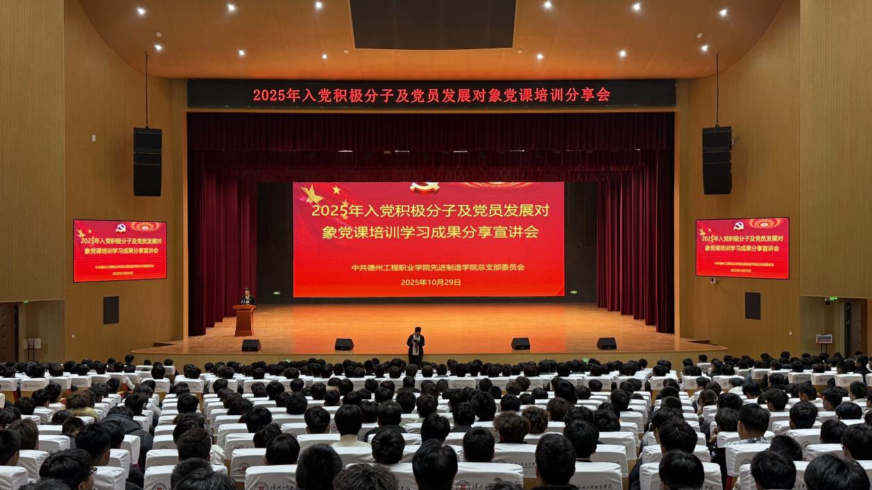 2025年10月29日下午,先进制造学院在学术报告厅隆重举行入党积极分子及发展对象学习成果分享会。2025级全体大一新生、2025年党员入党积极分子及发展对象齐聚一堂,共同聆听成长故事,感悟初心使命。校党委副书记、副校长王守庆,先进制造学院党总支书记、院长张建涛,教学副院长展瑞娇,实训中心主任李磊出席活动。会议由先进制造学院党委副书记冯修坤主持。
